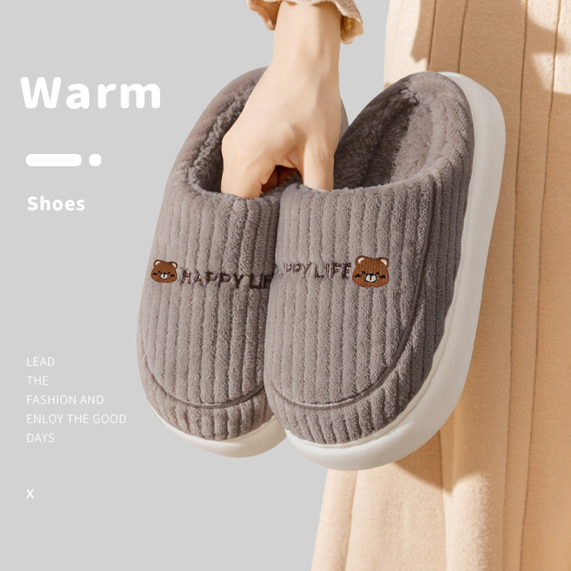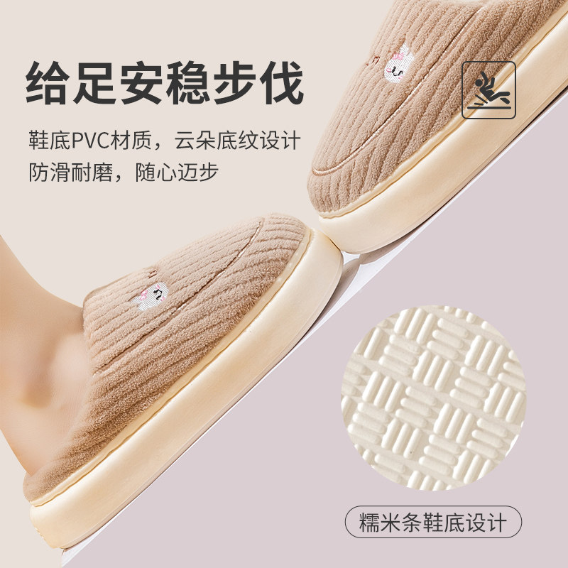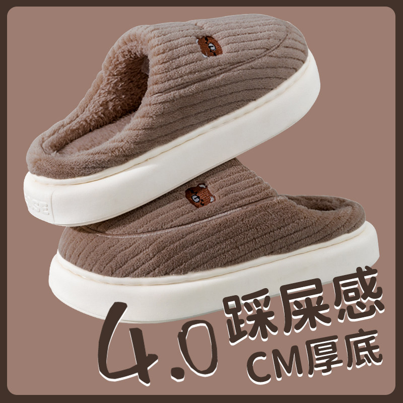 大码棉拖鞋男秋冬季家居家防滑厚底踩屎感毛毛绒保暖室内情侣女士