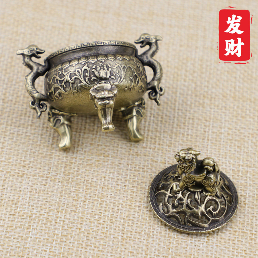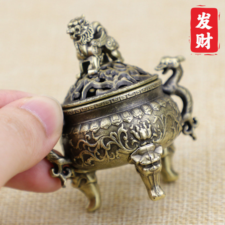 三足麒麟耳香炉合金小香炉香薰炉迷你室内镂花鼎工艺品摆件檀香