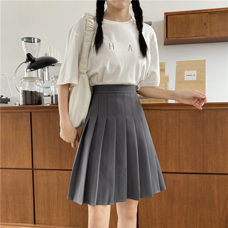 百褶裙女小个子夏季新款高腰显瘦半身裙纯色大码学院风jk短裙套装