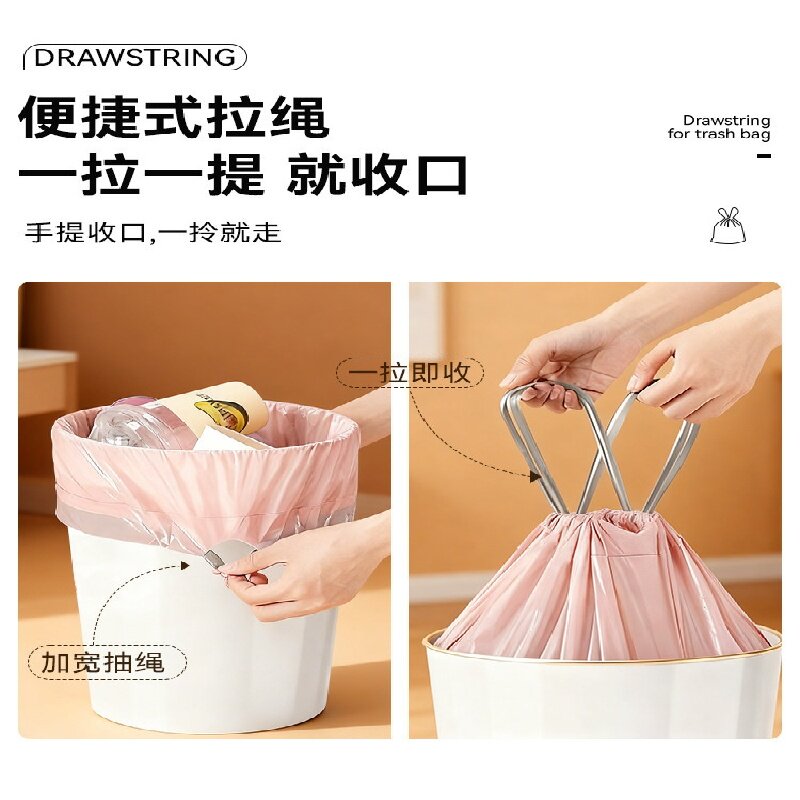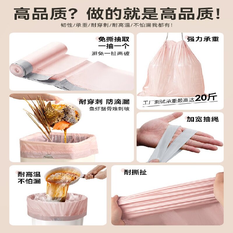 抽绳垃圾袋免撕家用粉色手提式厨房袋子自动收口大号特厚实塑料袋
