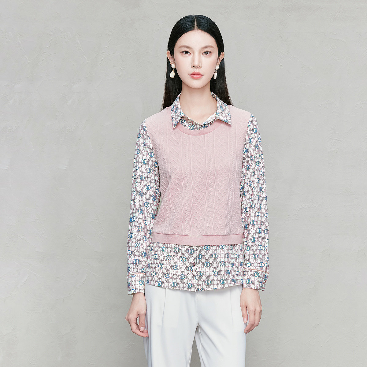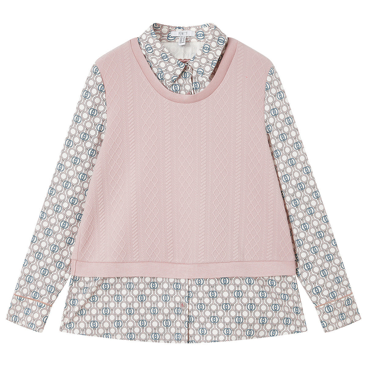 FINITY菲妮迪假两件雪纺衫2026年春季新款简约拼接衬衫领上衣女