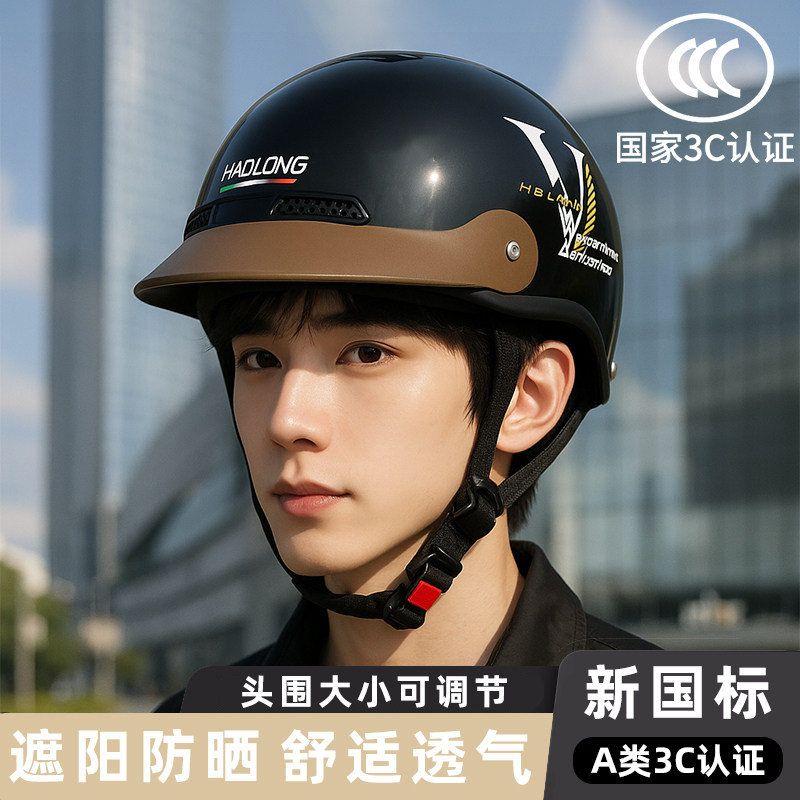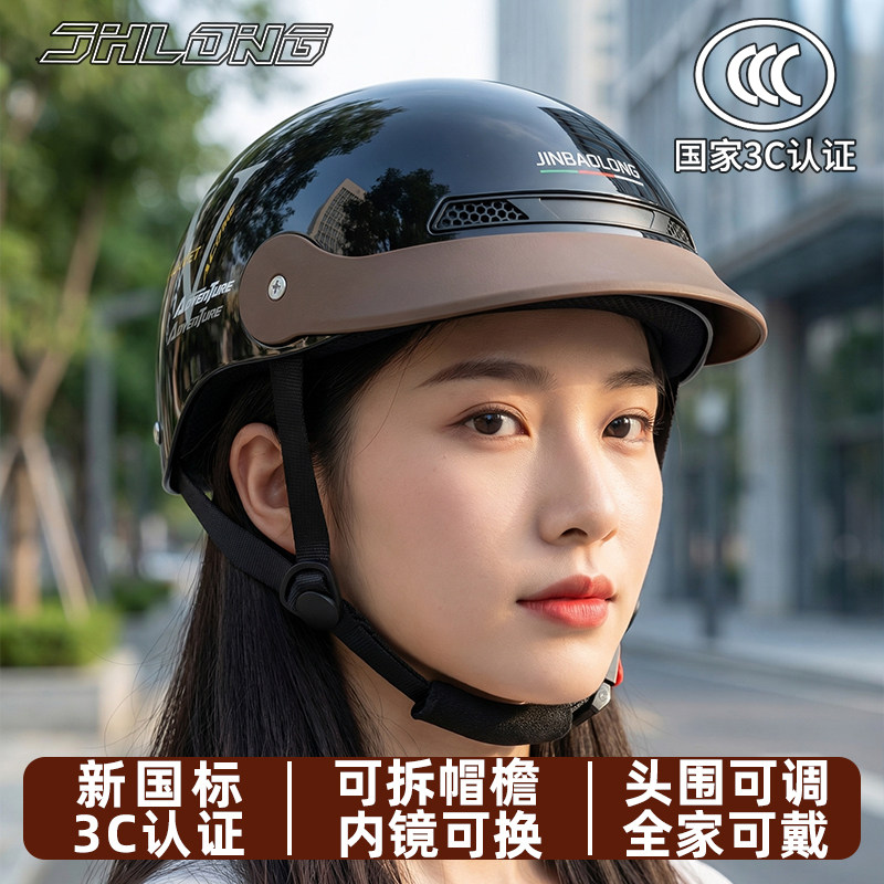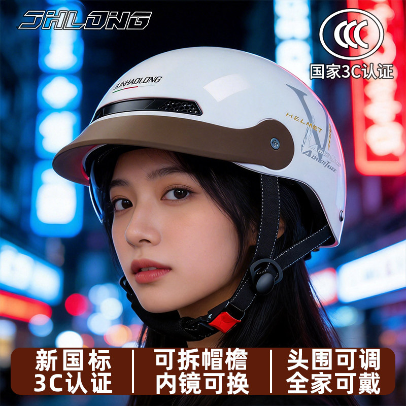 3C认证电动摩托车头盔男女士鸭舌帽半盔四季通用冬季透气轻便安全