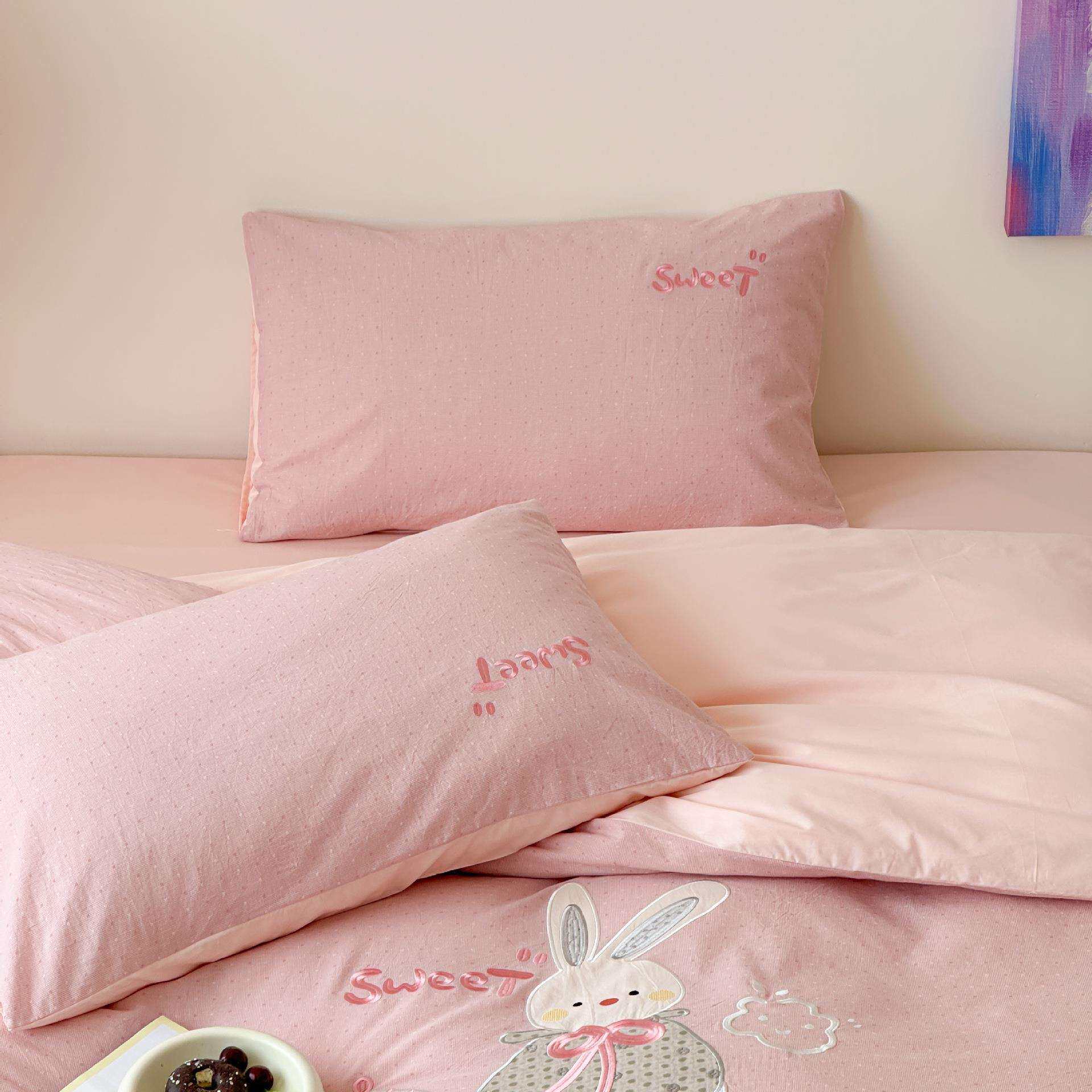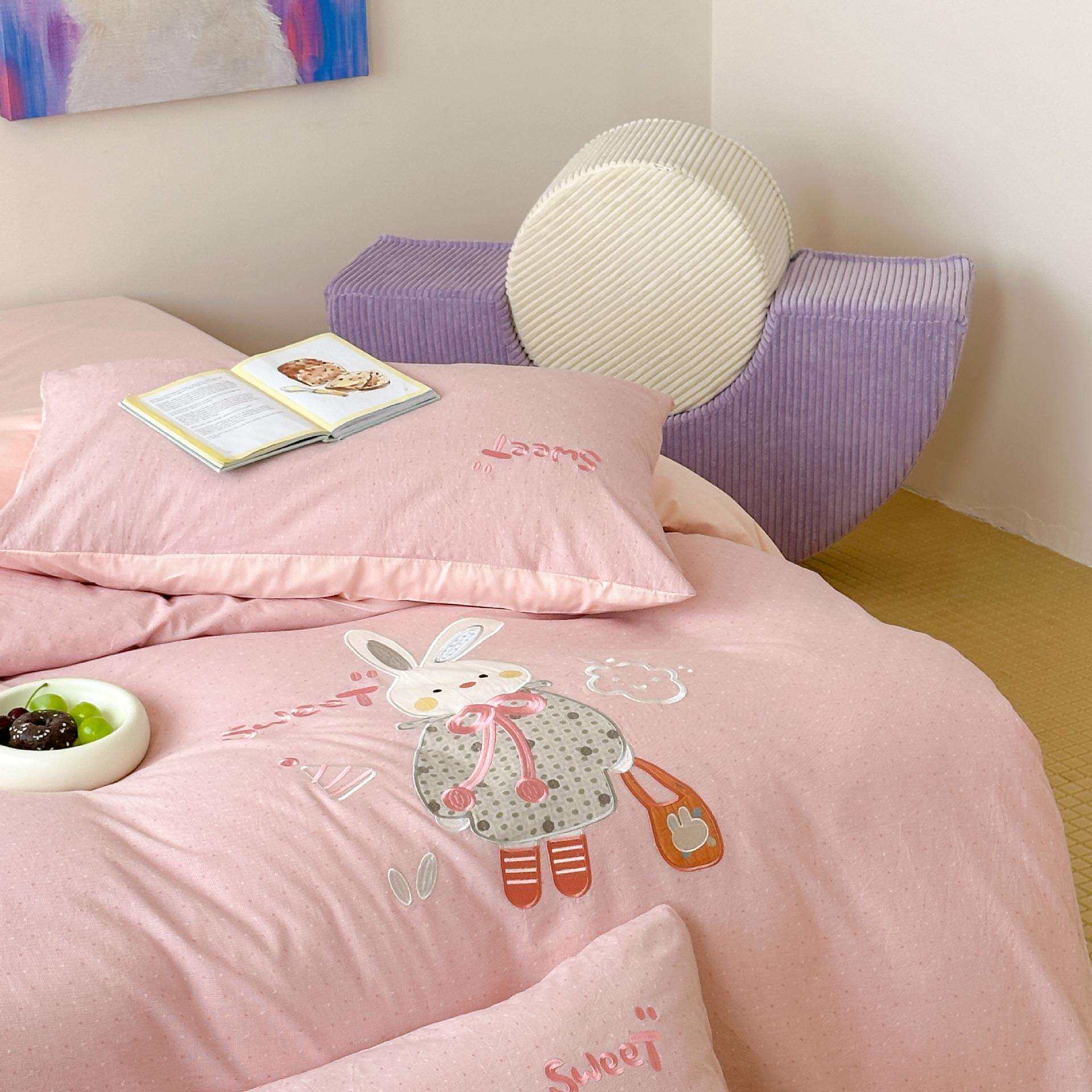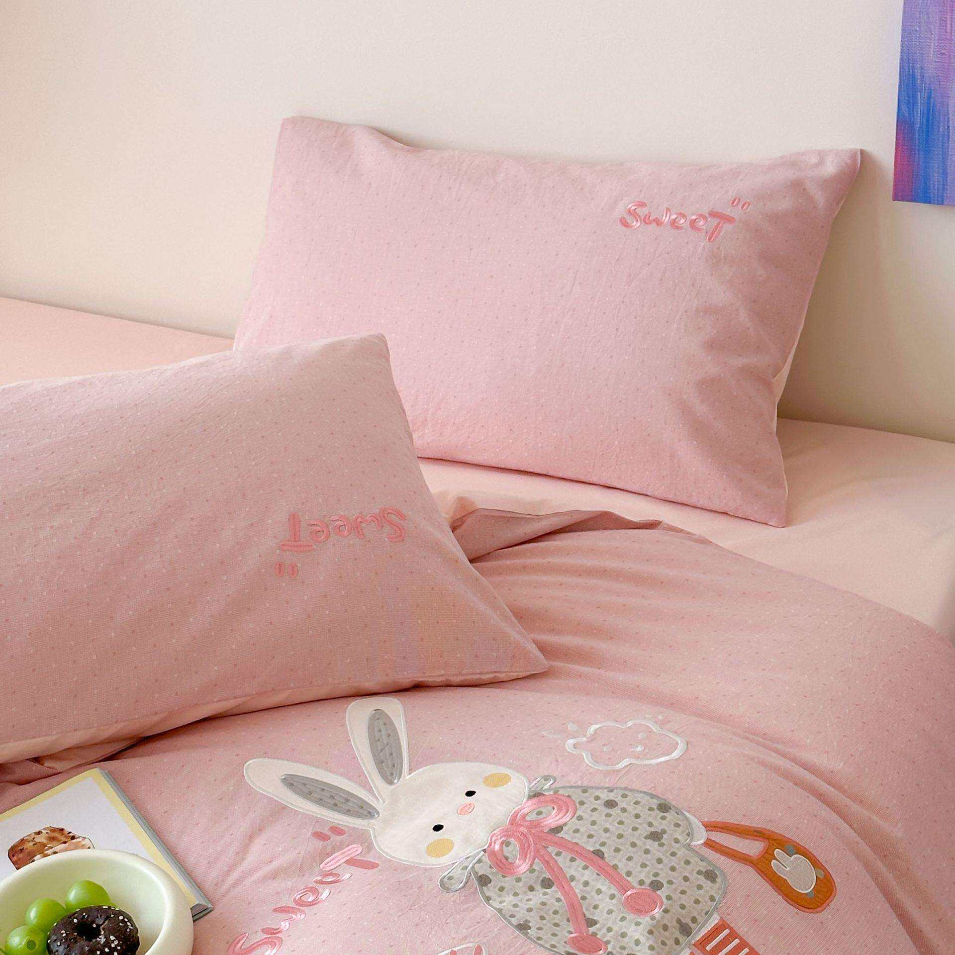 A类母婴2025春夏新款全棉纯棉色织水洗提花小波点贴布四件套可爱