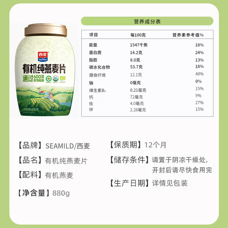 【新品】西麦有机纯燕麦片420g独立装高蛋白质0添加蔗糖冲饮早餐