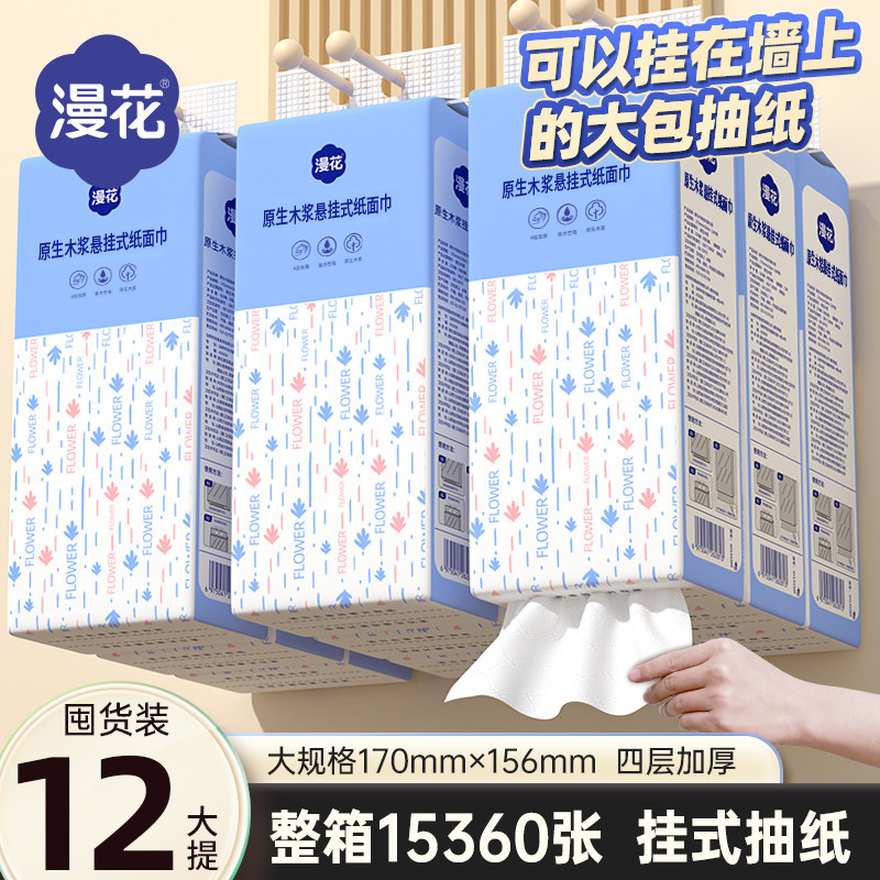 漫花1280张抽纸大提整箱批家用无香型卫生纸悬挂整箱实惠卫生纸