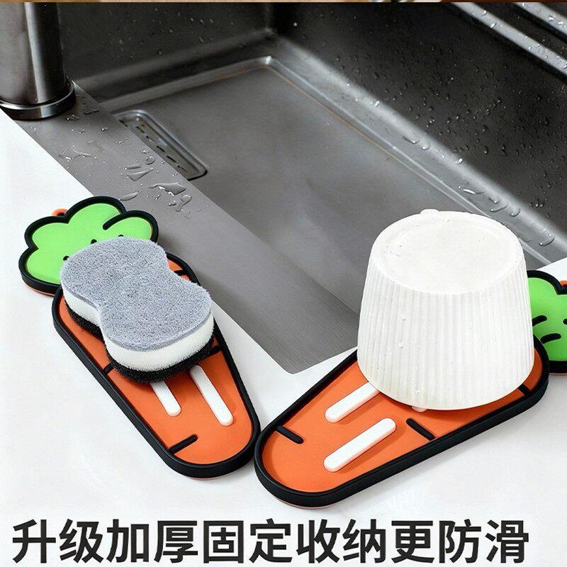 胡萝卜锅盖收纳垫沥水多功能厨房置物垫神器台面碗柜省空间防滑