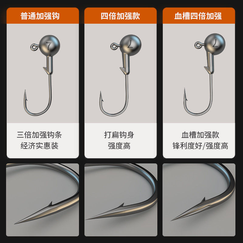 平凡之路铅头钩50枚罐装加强软虫钩翘嘴鳜鱼钩鲈鱼假饵血槽圆形钩