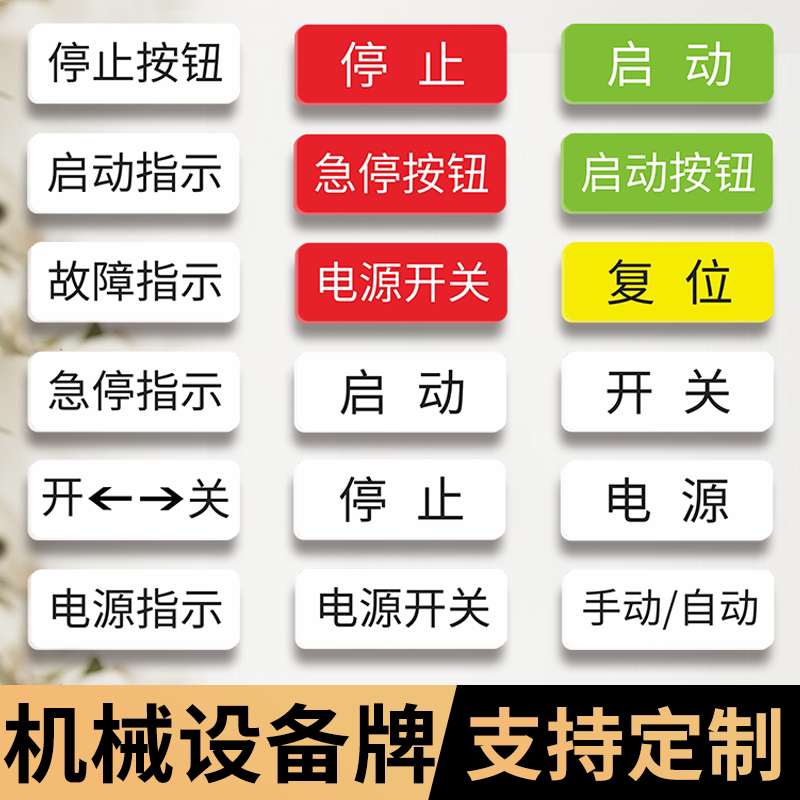 机械设备启动开关按钮标识牌亚克力电源复位急停指示标志牌安全停止故障机械设备标识贴牌工厂车间标贴定制