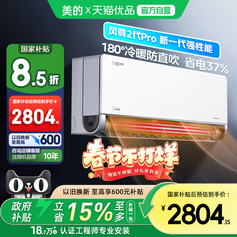 美的酷省电pro大1.5匹一级能效变频冷暖两用家用挂机空调官方正品