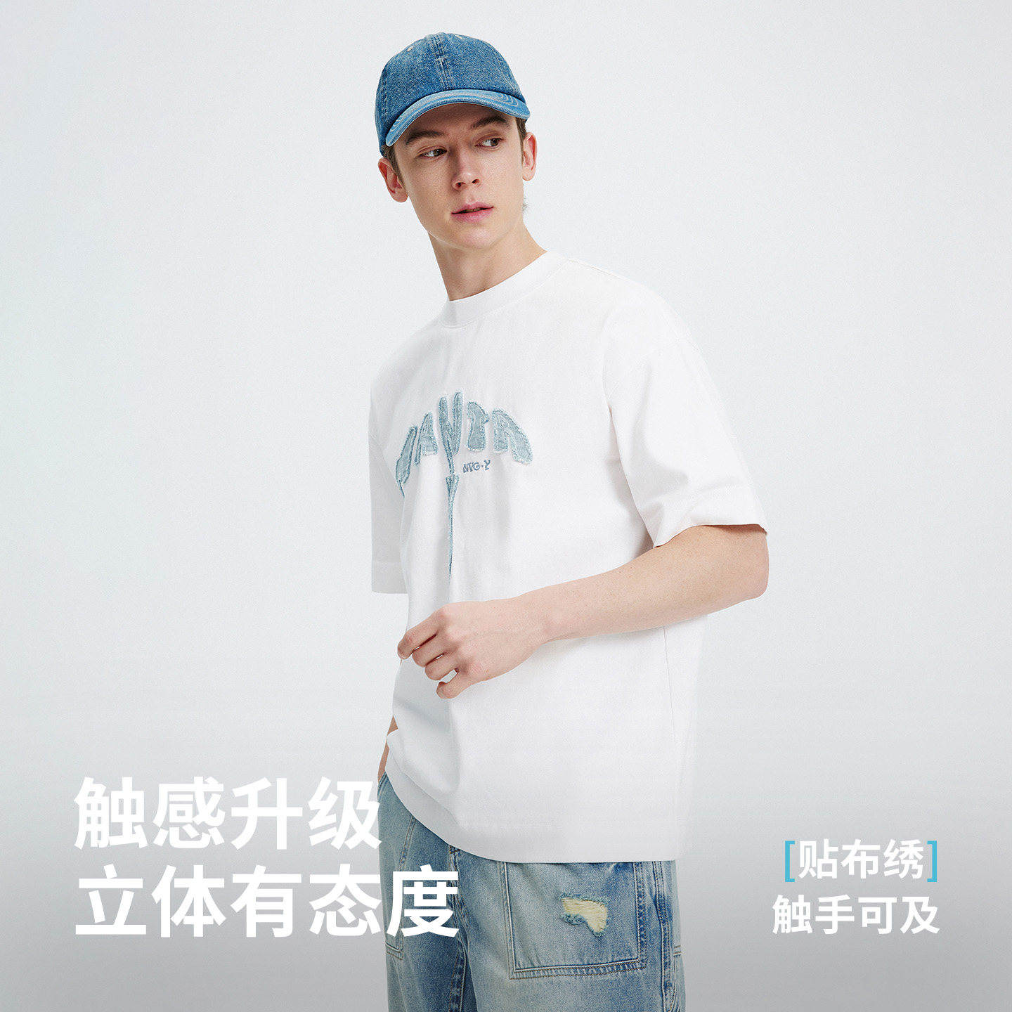 森马短袖T恤男纯棉打底衫修身长袖25夏季新款纯色内搭上衣简约白