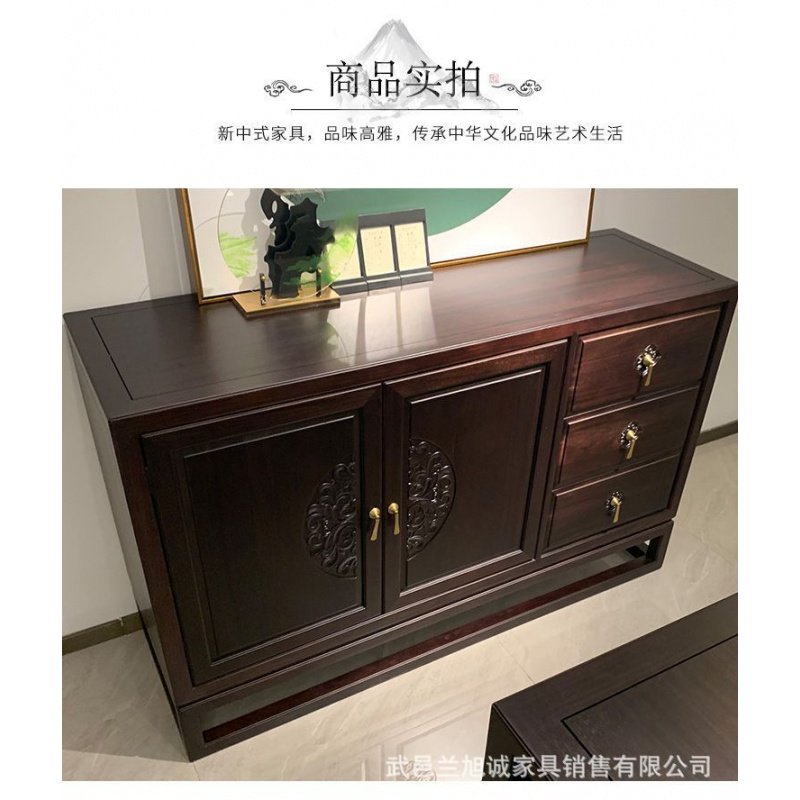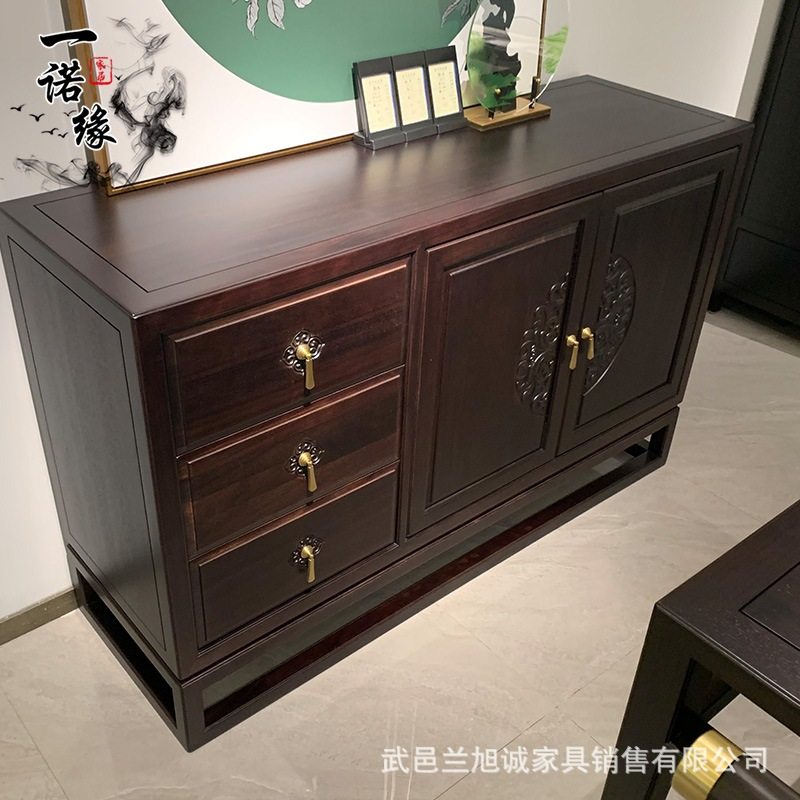 厂家新中式实木餐边柜现代简约碗盘柜雕花收纳柜收纳柜禅意装饰柜