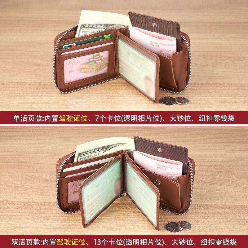 新款钱包复古男款防盗刷拉链多功能驾驶证卡包钱夹现金小巧手工