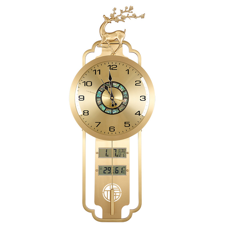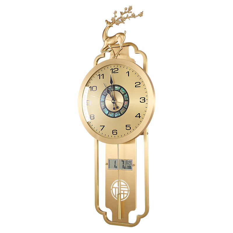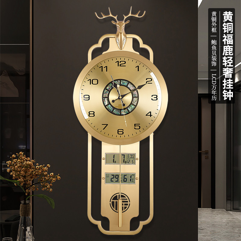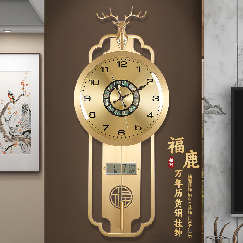 新中式黄铜挂钟客厅钟表装饰时钟万年历表挂墙轻奢福鹿石英钟3006