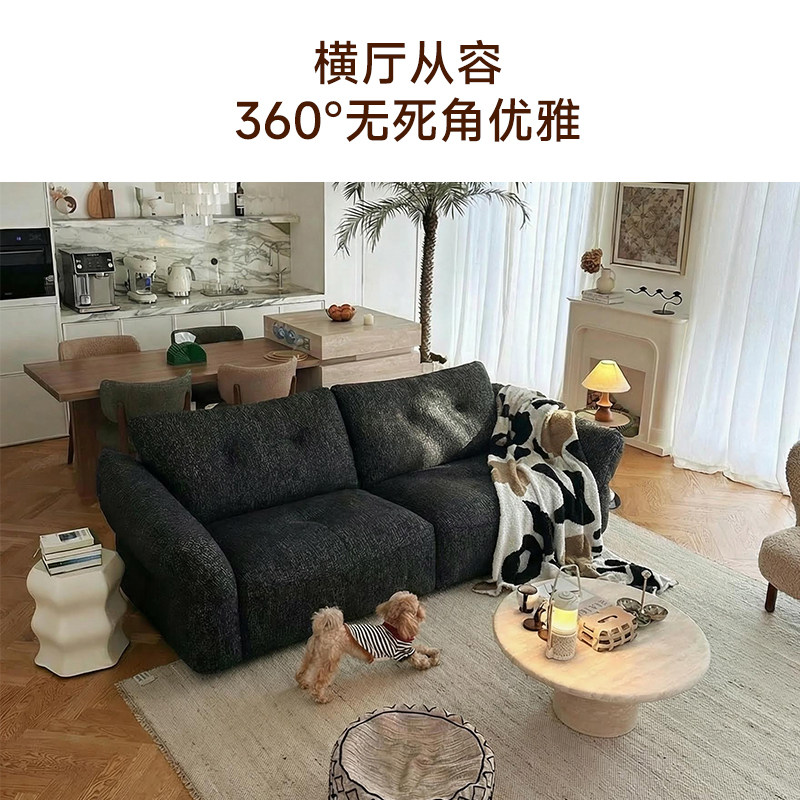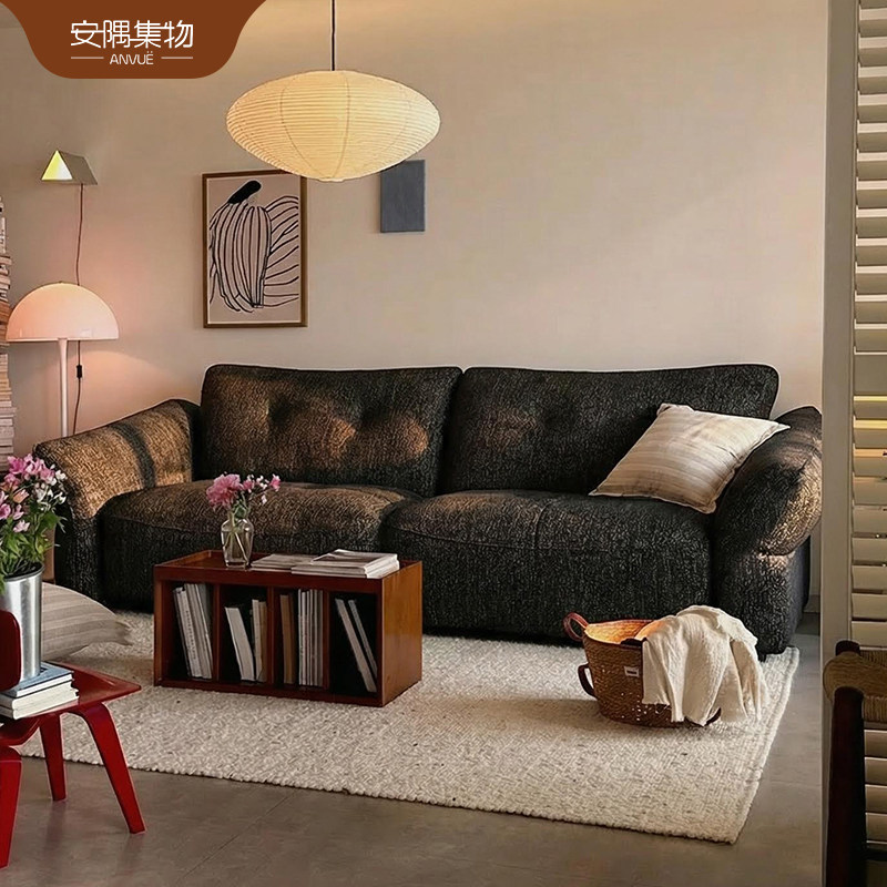 安隅集物蒙朵沙发夜粼金中古复古包豪斯黑色布艺雪尼尔高靠背沙发