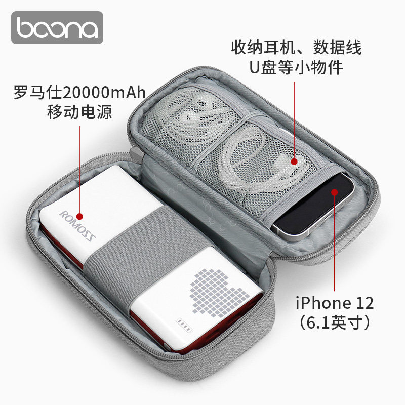 充电宝数据线收纳包移动电源布袋硬盘盒子手机保护套适小米罗马仕