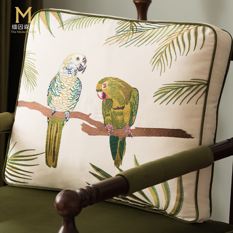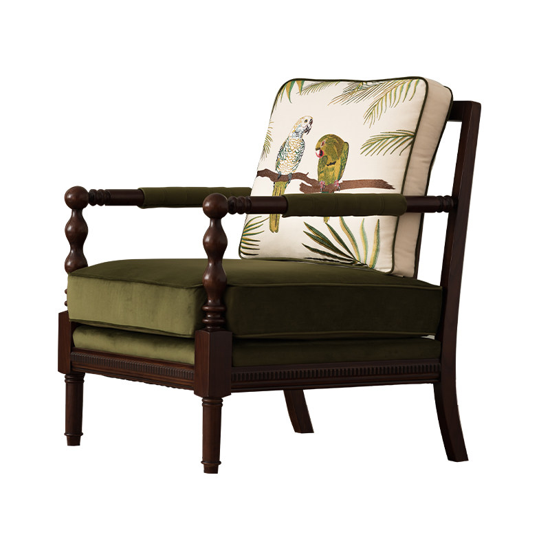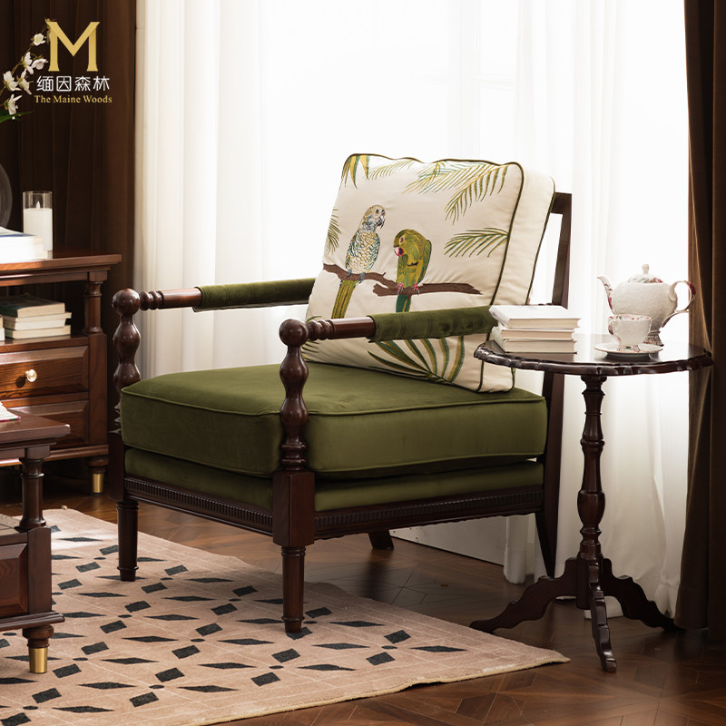 绿色沙发椅实木单人沙发美式老虎椅客厅休闲椅布艺阳台复古