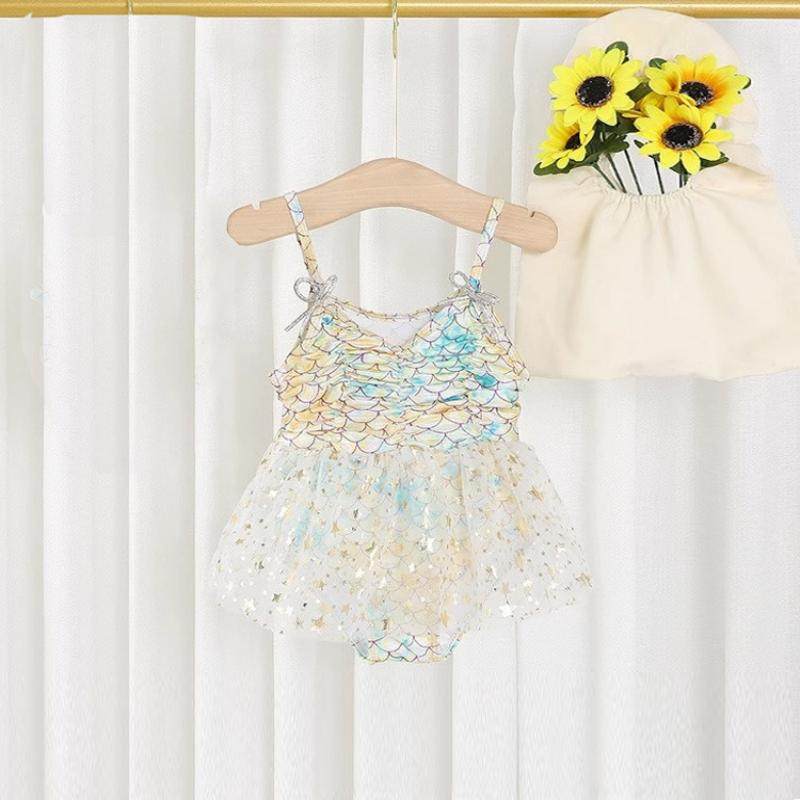儿童泳衣女款美人鱼公主裙女童泳衣泡温泉洋气宝宝女孩连体泳衣