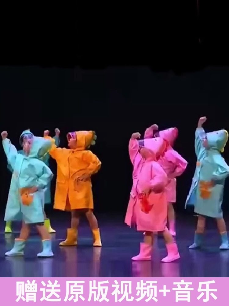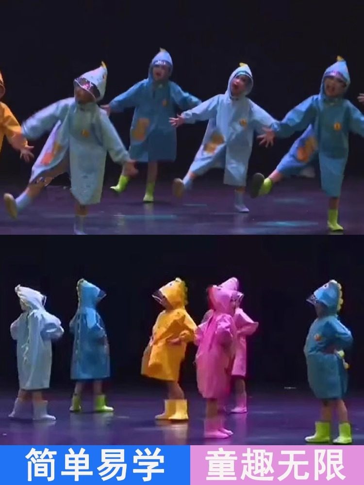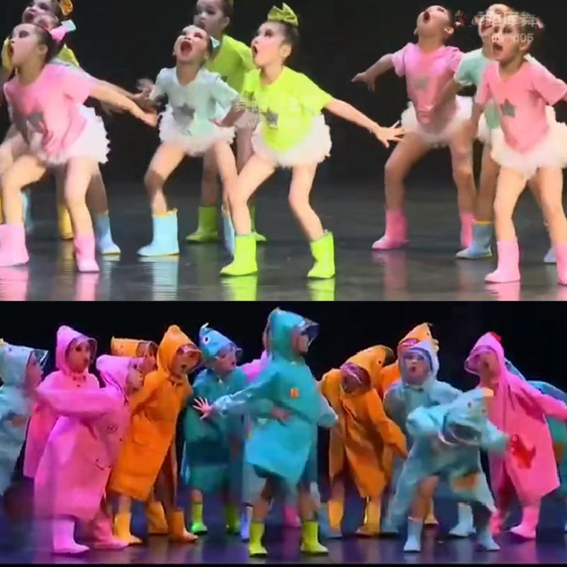 六一新款踩雨水舞蹈服趣味彩色雨衣表演服下雨了演出服幼儿园服装