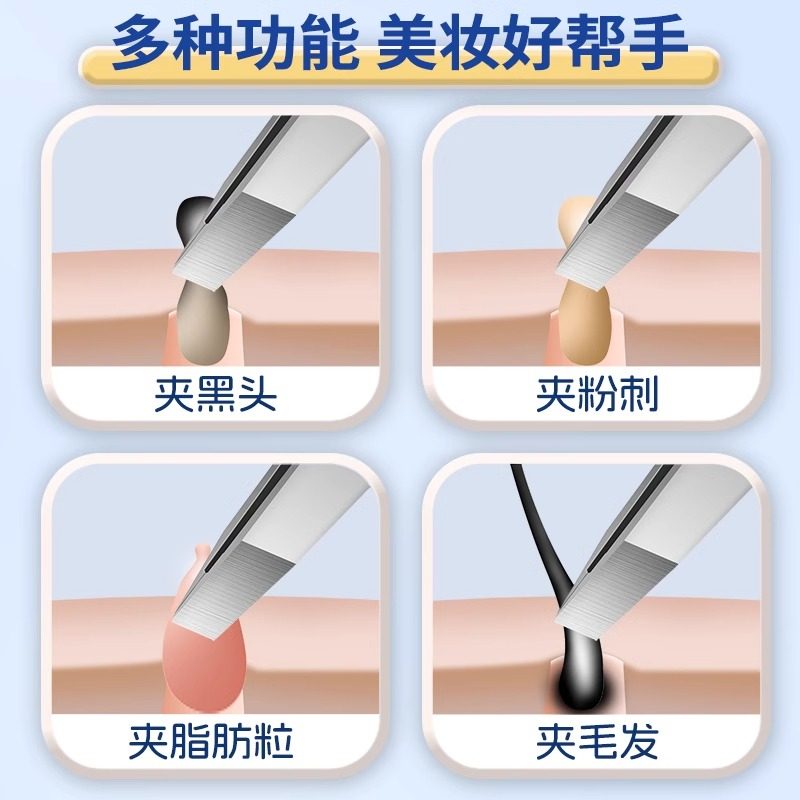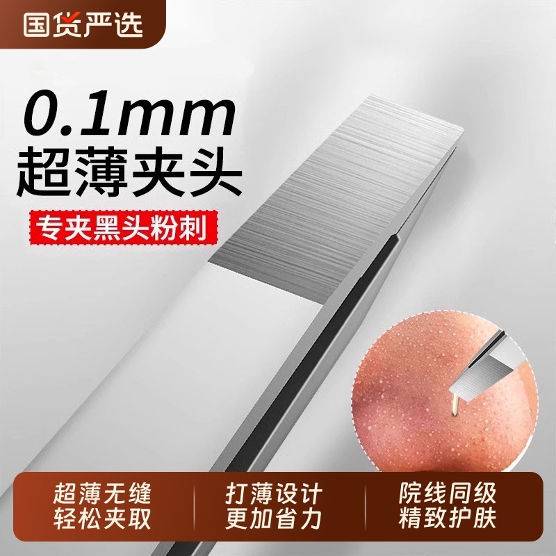 0.1mm超薄拔黑头镊子高精密眉毛夹不锈钢夹睫毛工具眉钳无缝平口