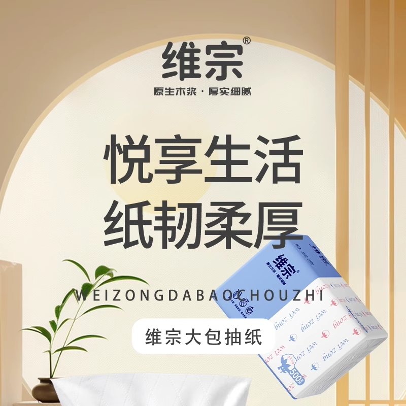 维宗系列里超大包‘坦克’加厚柔软抽纸巾500型加量家用面巾纸