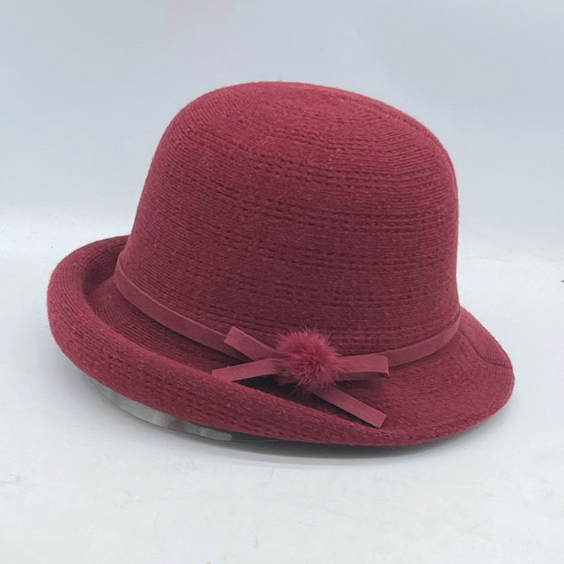 赫本风帽子女士渔夫帽子女洋气卷边礼帽秋冬保暖英伦盆帽红色黑色