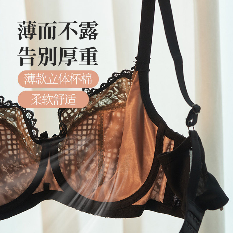 润微茶肌内衣女士大胸显小薄款收副乳聚拢大码上托防下垂蕾丝文胸
