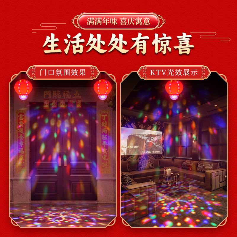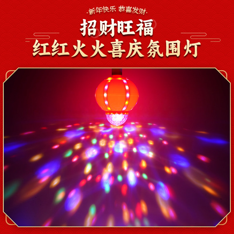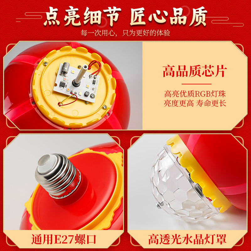 led灯泡七彩旋转灯e27螺口大门阳台吉祥喜庆春节过年客厅氛围灯笼
