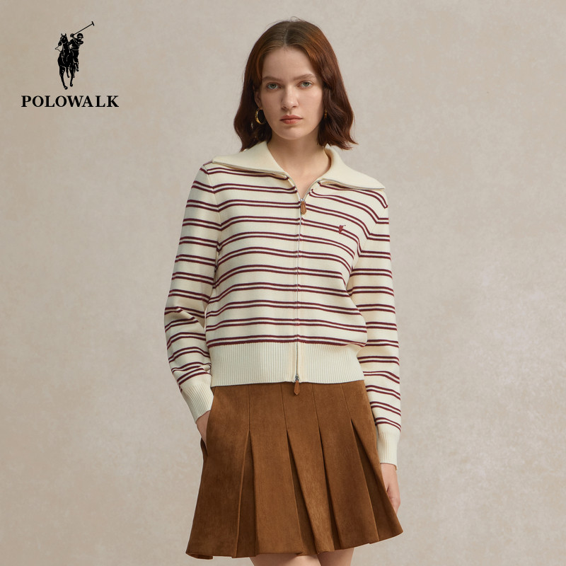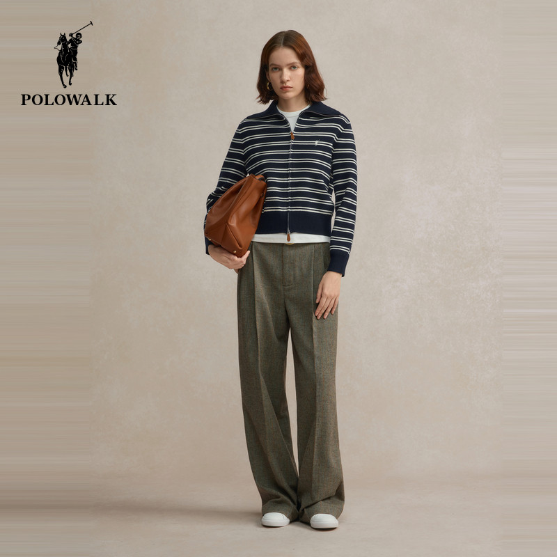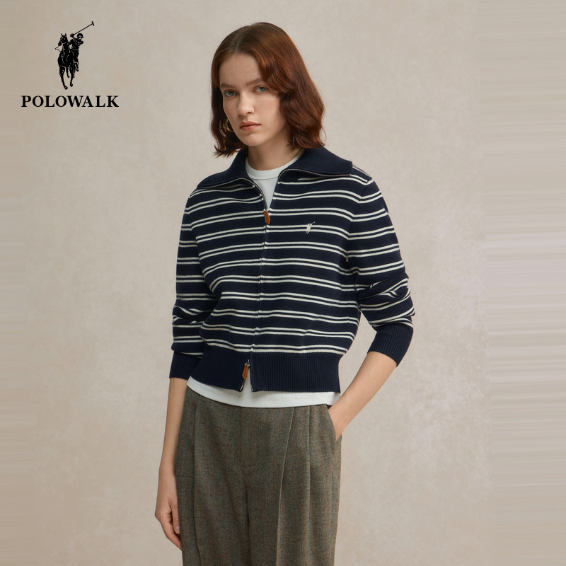 【含绵羊毛】POLOWALK长袖针织衫女式2025秋季新品百搭针织开衫女