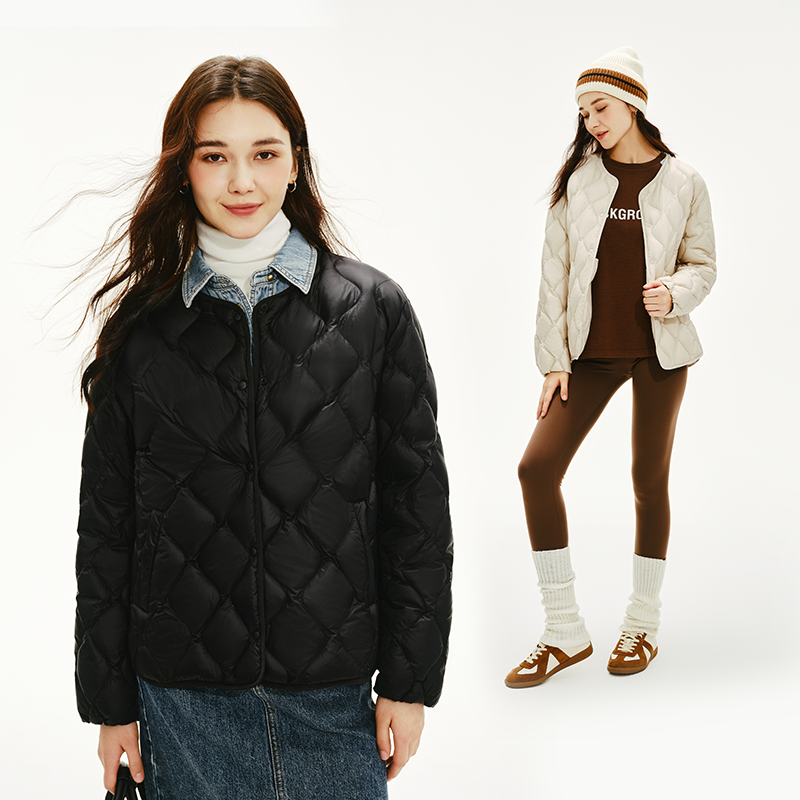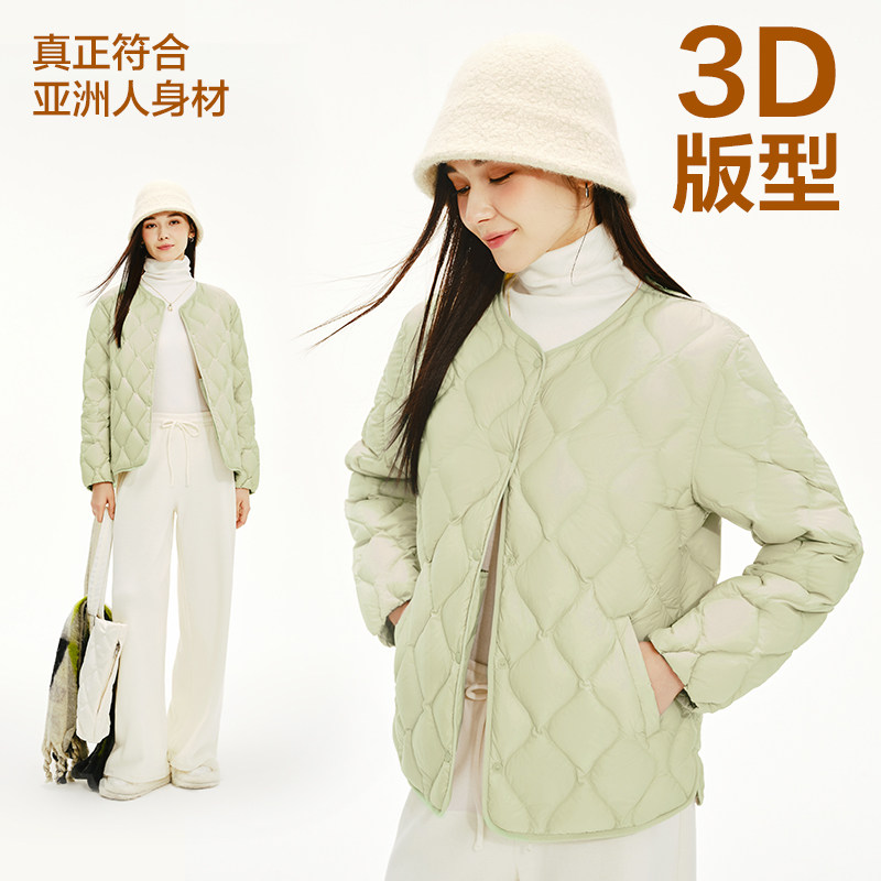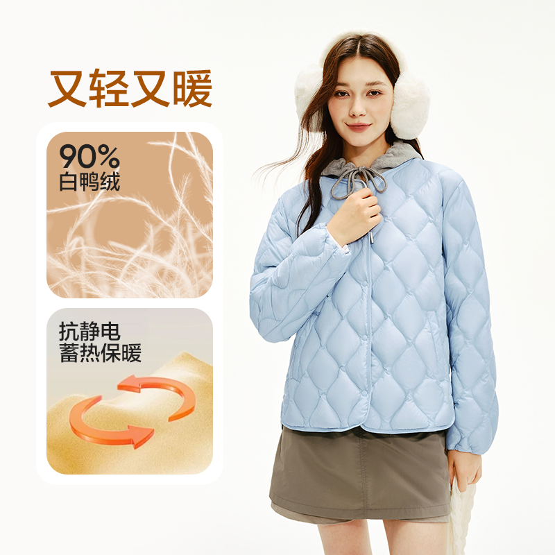 鸭鸭轻薄羽绒服女2025年秋冬反季短款立领修身舒适上衣内胆外套J