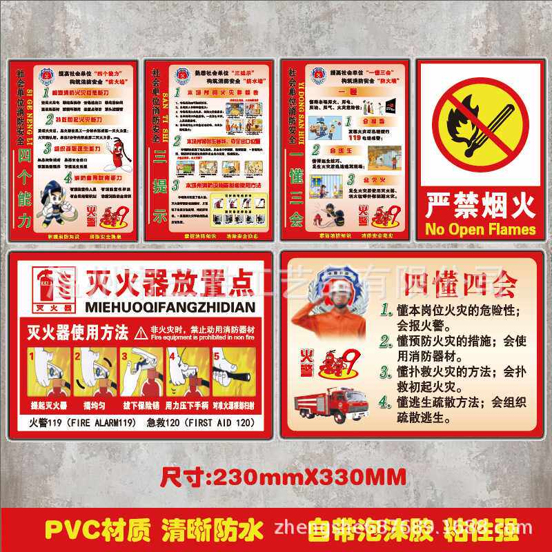 四懂四会消防安全警告指示牌墙贴禁止吸烟标识牌安全标识牌批