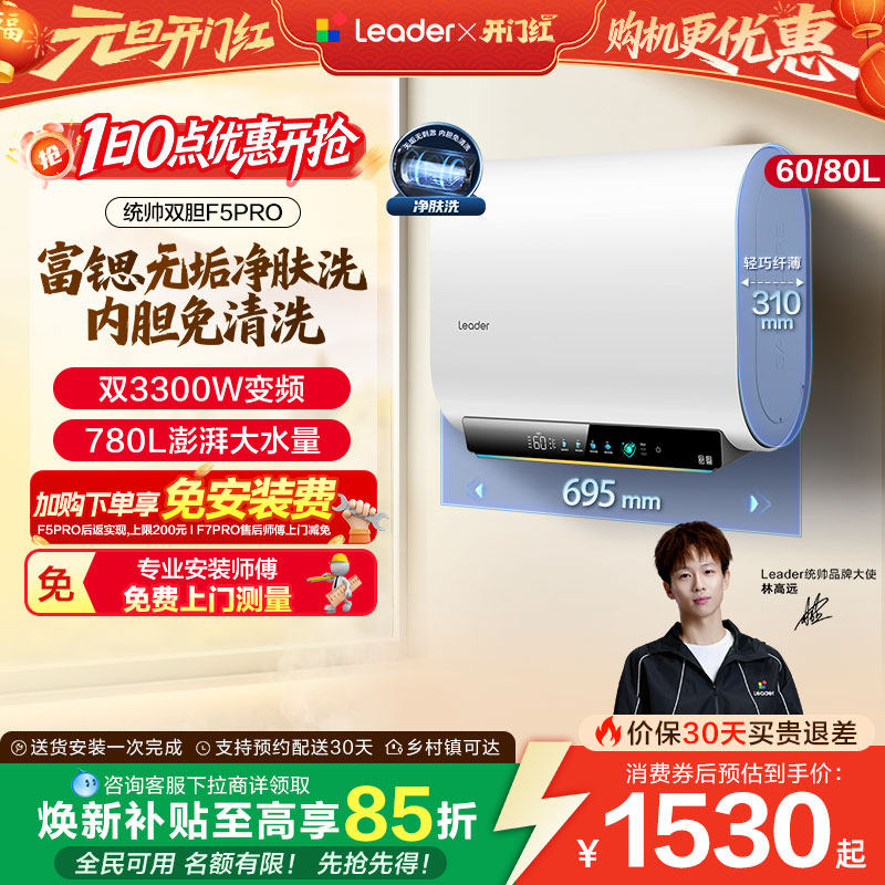 【焕新补贴】海尔出品统帅电热水器家用一级能效扁桶节能F5PRO