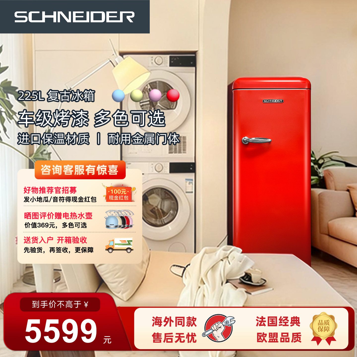 SCHNEIDER 225L复古冰箱单门冷藏冷冻冰箱家用网红办公娱乐饮料