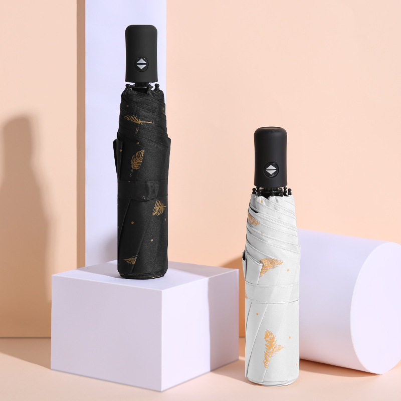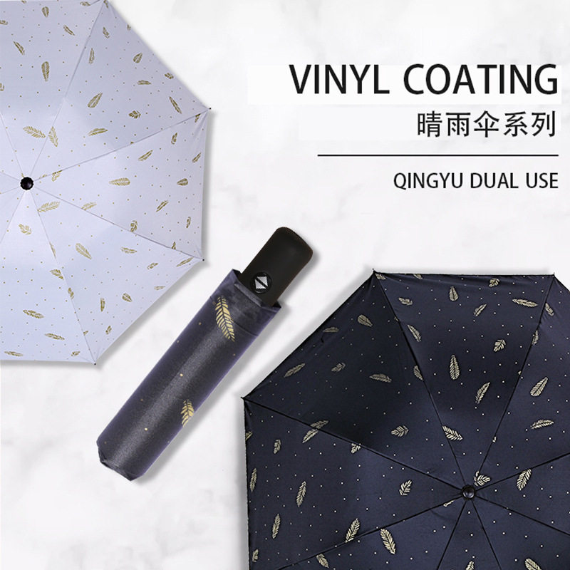 全自动雨伞防晒防紫外线羽毛小清新女学生晴雨两用三折黑胶晴雨伞