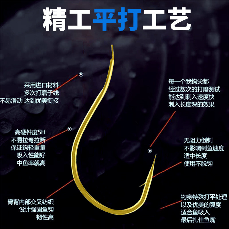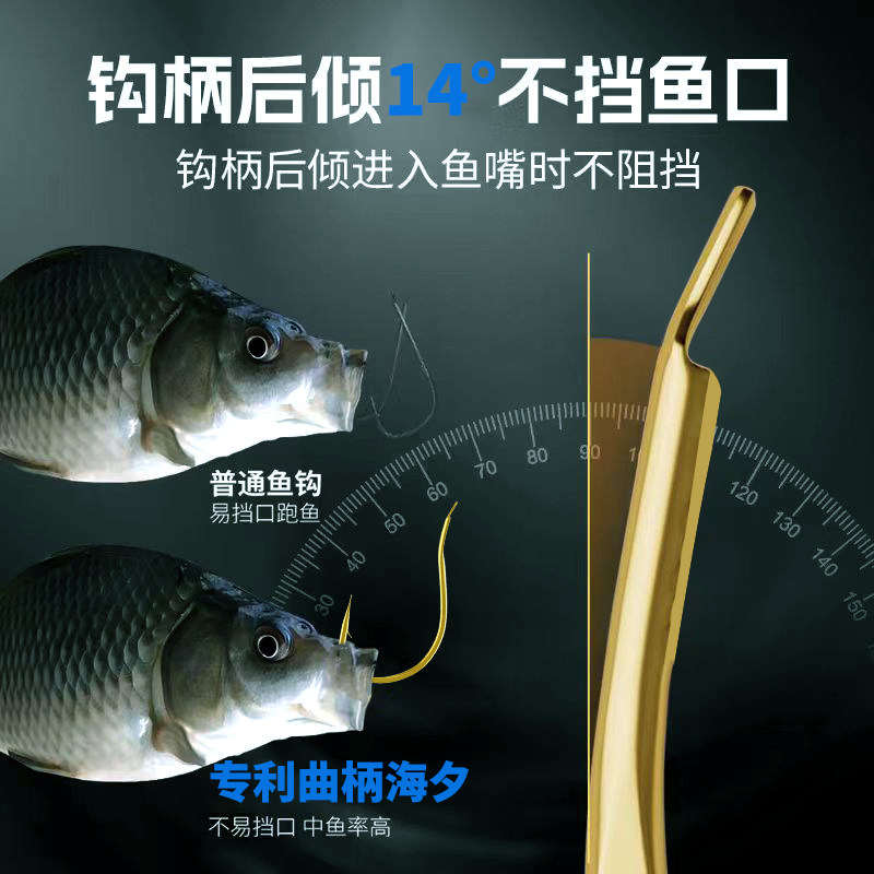 曲柄金海夕鱼钩平打散装加强版鲫鱼鲤鱼扁鱼草鱼翘嘴金袖鱼线溪流