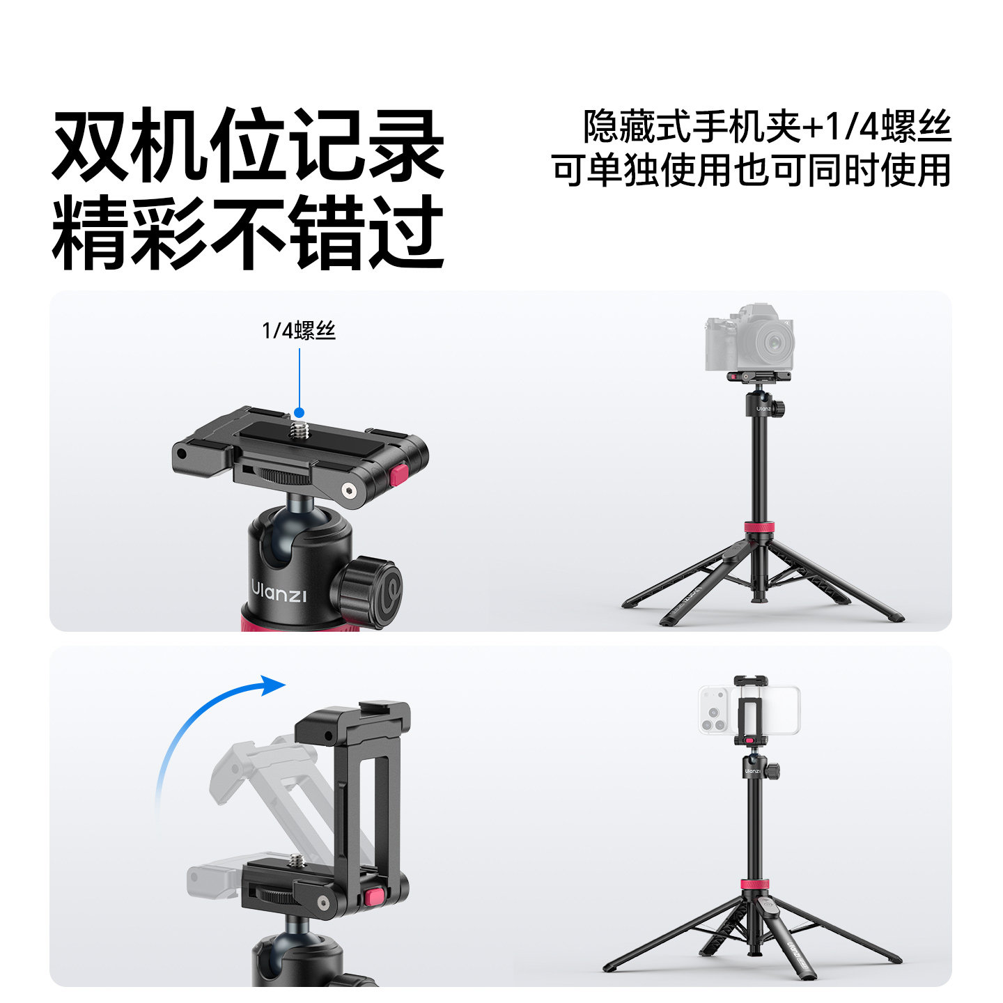 Ulanzi优篮子MT-44 B三脚架手机相机支架2025新款自拍杆落地拍摄丢丢杆桌面适用iPhone17pro旅游演唱会四脚架