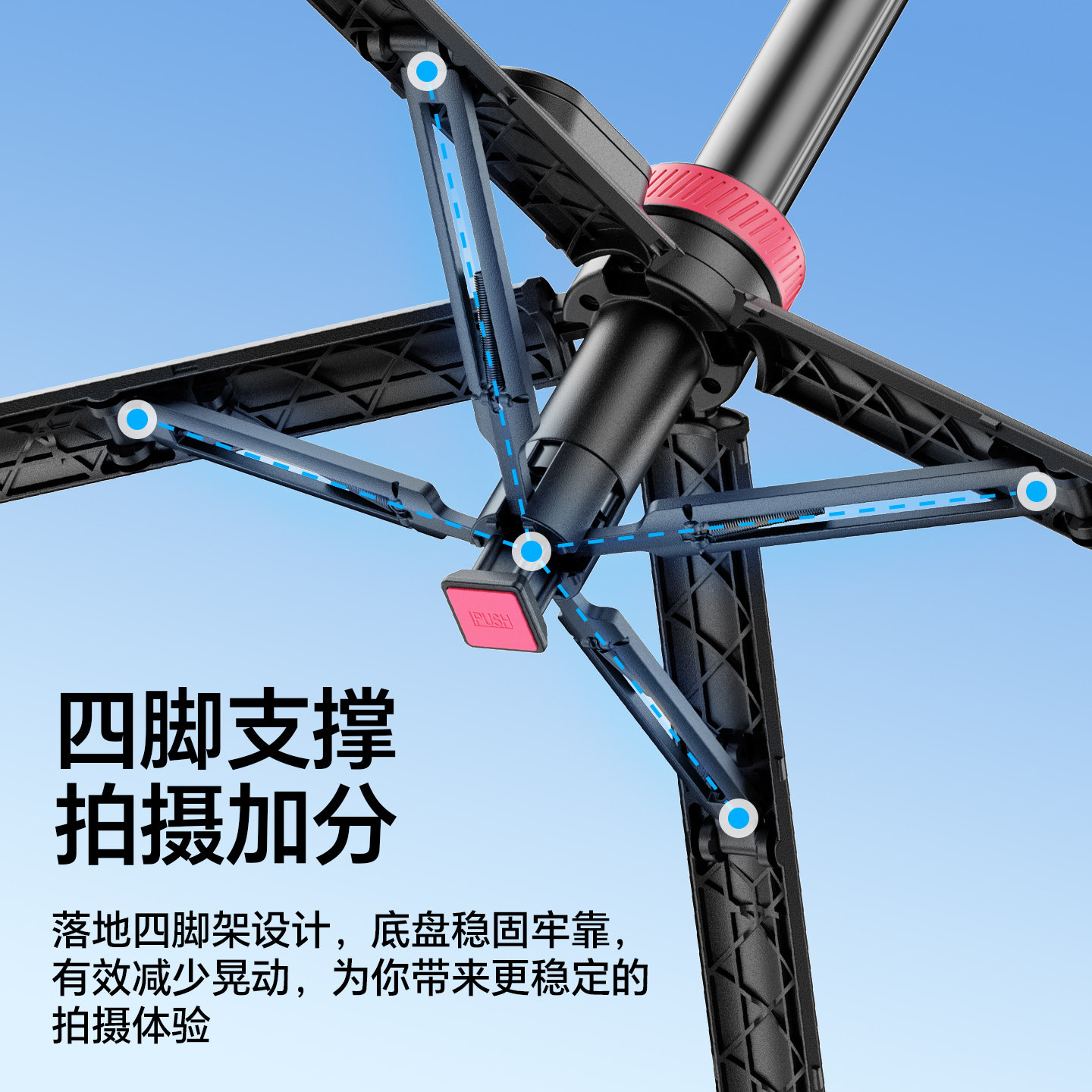 手机拍摄支架直播专用自拍杆三脚架落地式多功能支撑架通用捭机架户外便携伸缩升降网课考研复试架子三角支夹