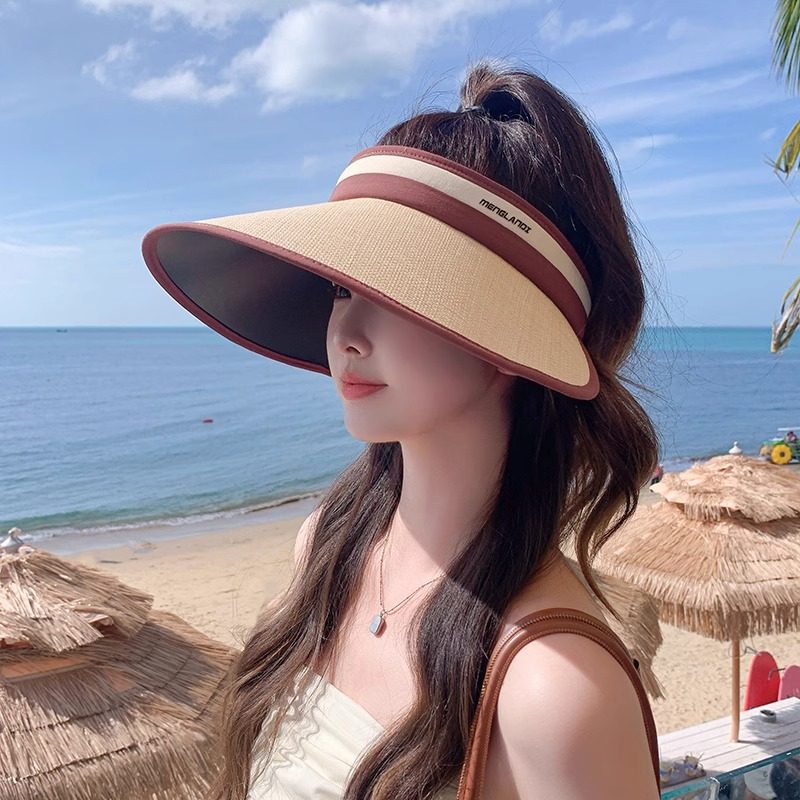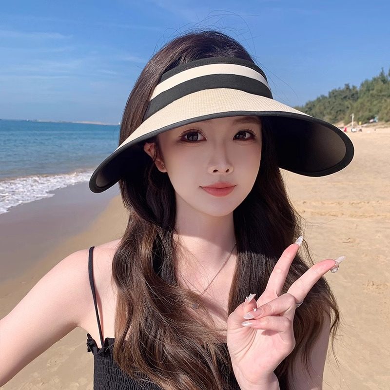 夏天防晒帽防紫外线加宽大帽檐草编帽子女空顶户外遮脸折叠遮阳帽