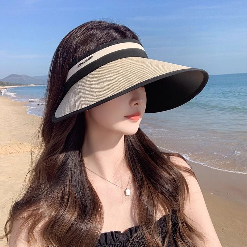 防晒帽女夏季防紫外线贝壳遮阳帽空顶太阳帽子大檐夏天儿童可折叠