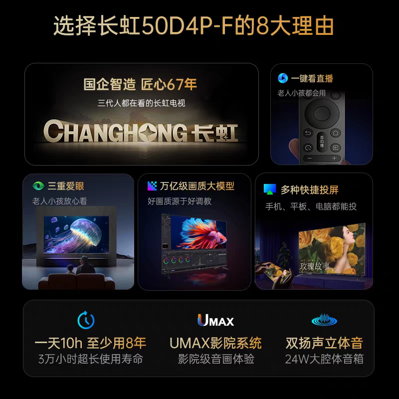 长虹50D4P-F 50英寸智能高清客厅卧室护眼节能LED液晶电视
