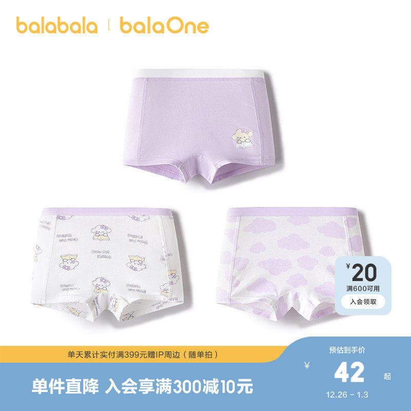 巴拉巴拉女童内裤棉平角小中大童四角短裤抗菌裆不夹P舒适三条装