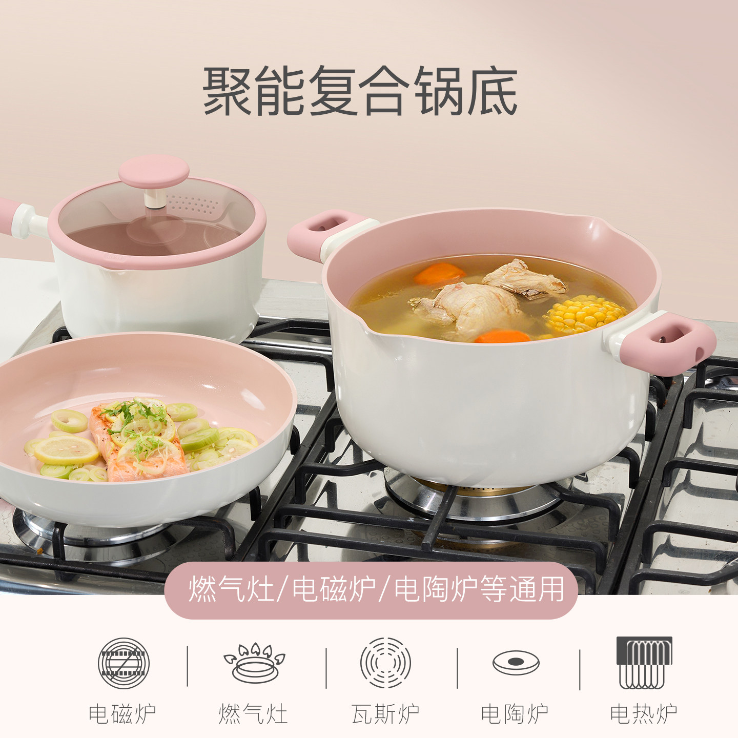 卡罗特汤锅煮锅钛陶瓷不粘锅炖锅蒸锅家用双耳煲汤锅电磁炉燃气灶