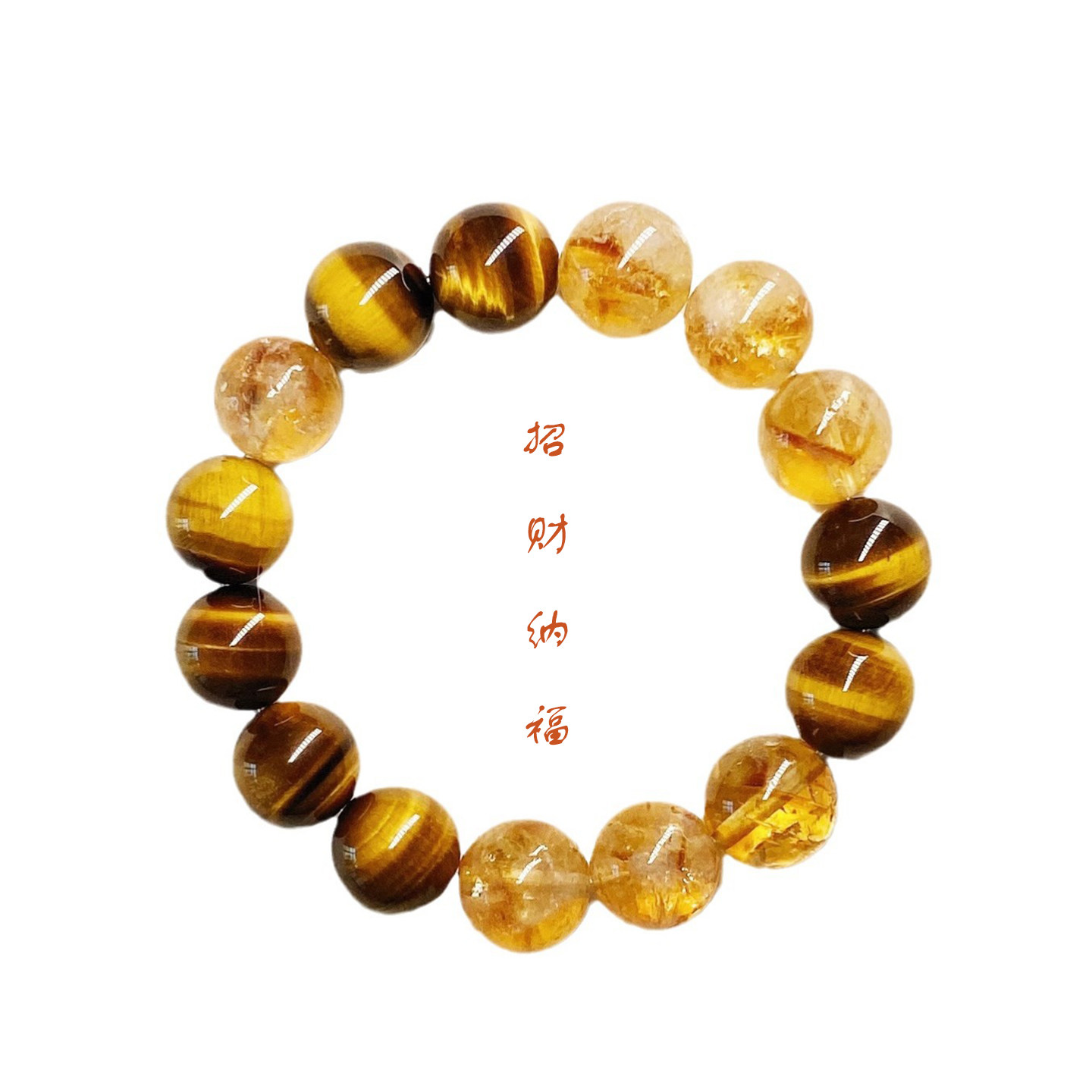 天然黄水晶黄塔晶黄虎眼石手链男女情侣手串招财好运手串生日礼物