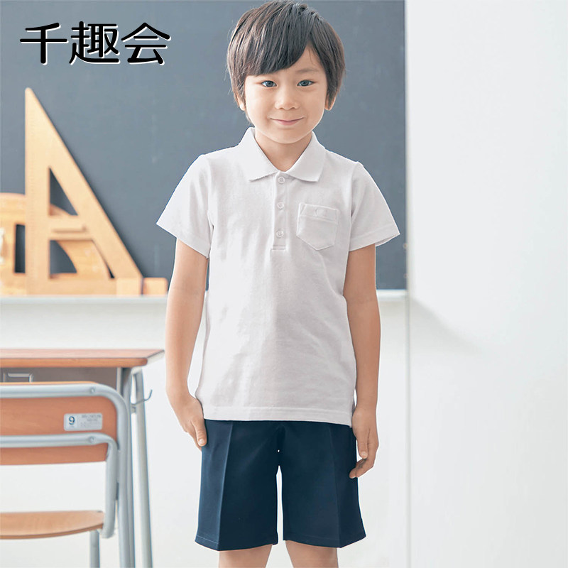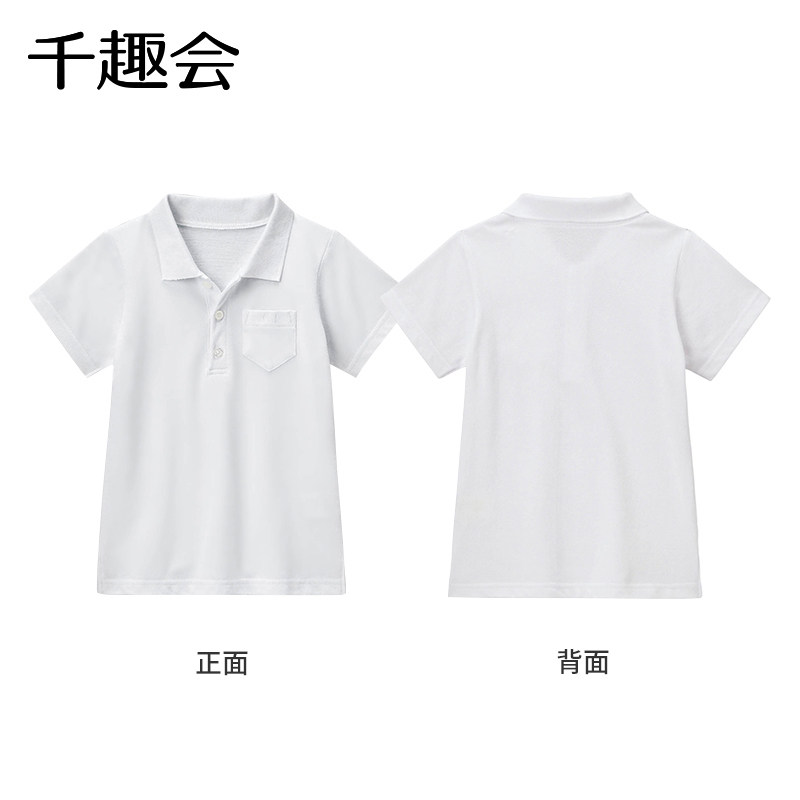 千趣会童装夏装校园风学生装纯白色纯棉透气男童短袖POLO衫