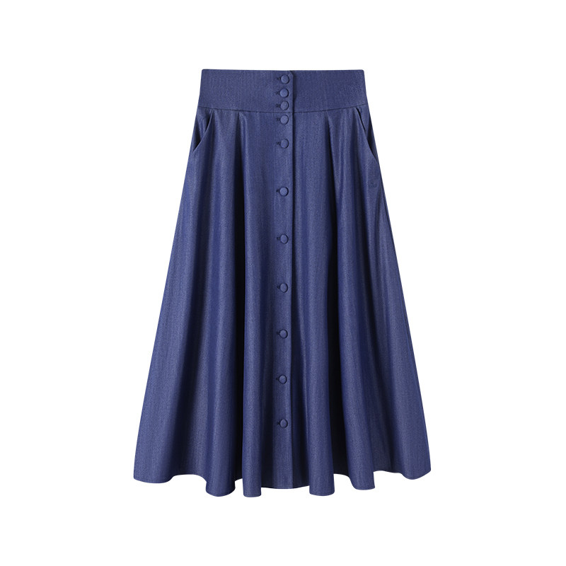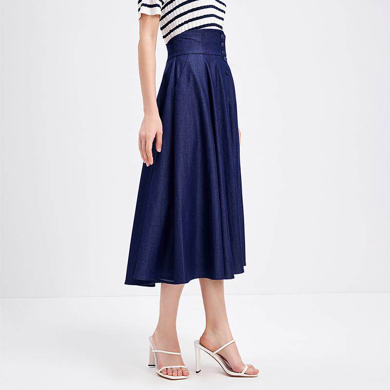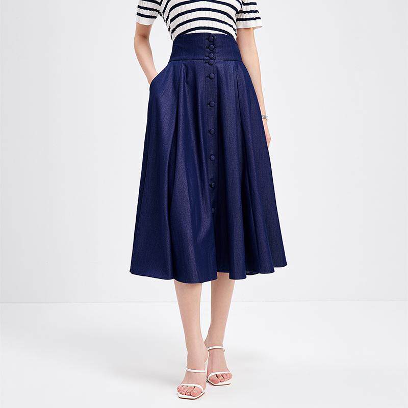 Navigare意大利小帆船蓝色休闲牛仔半身裙女士设计感显瘦a字裙子