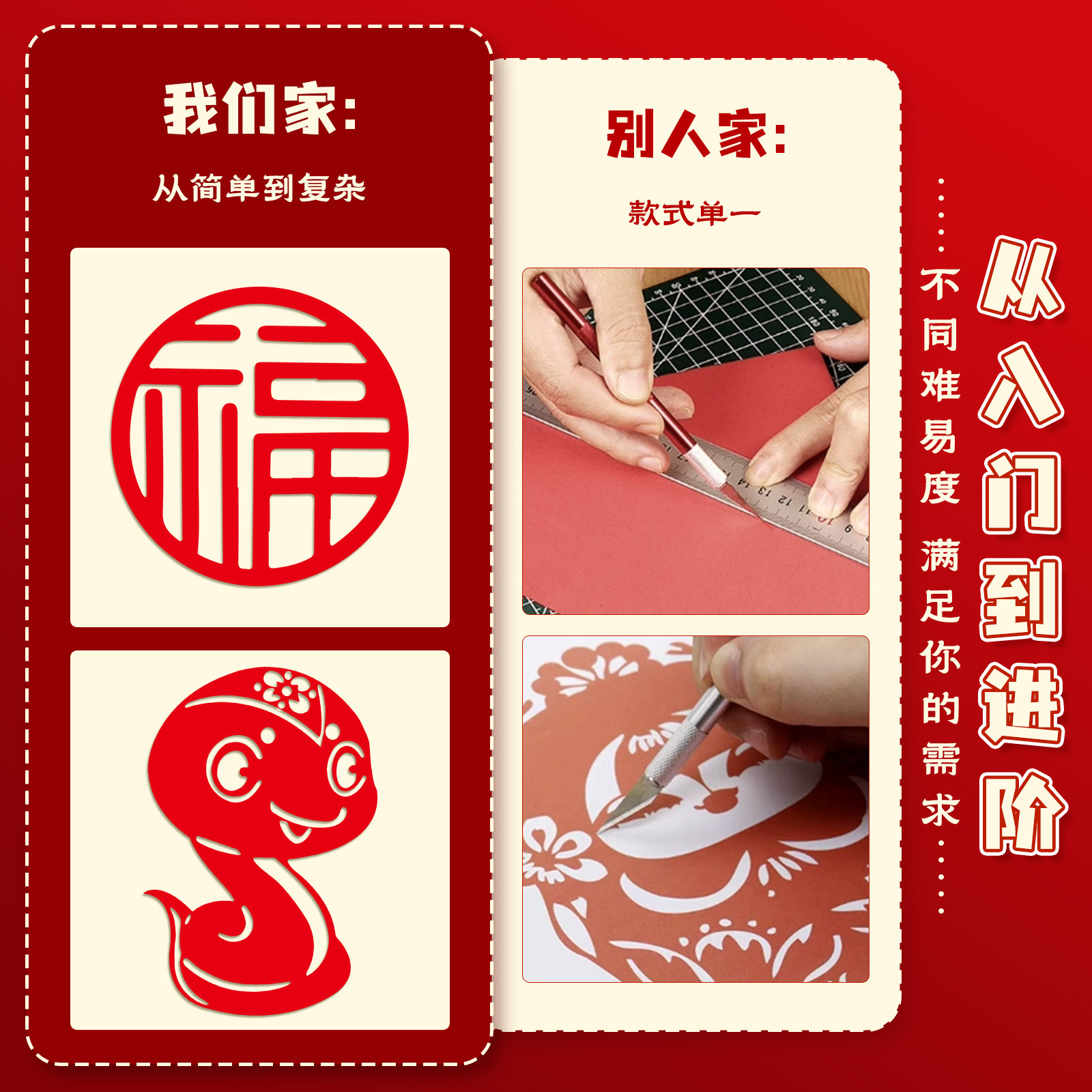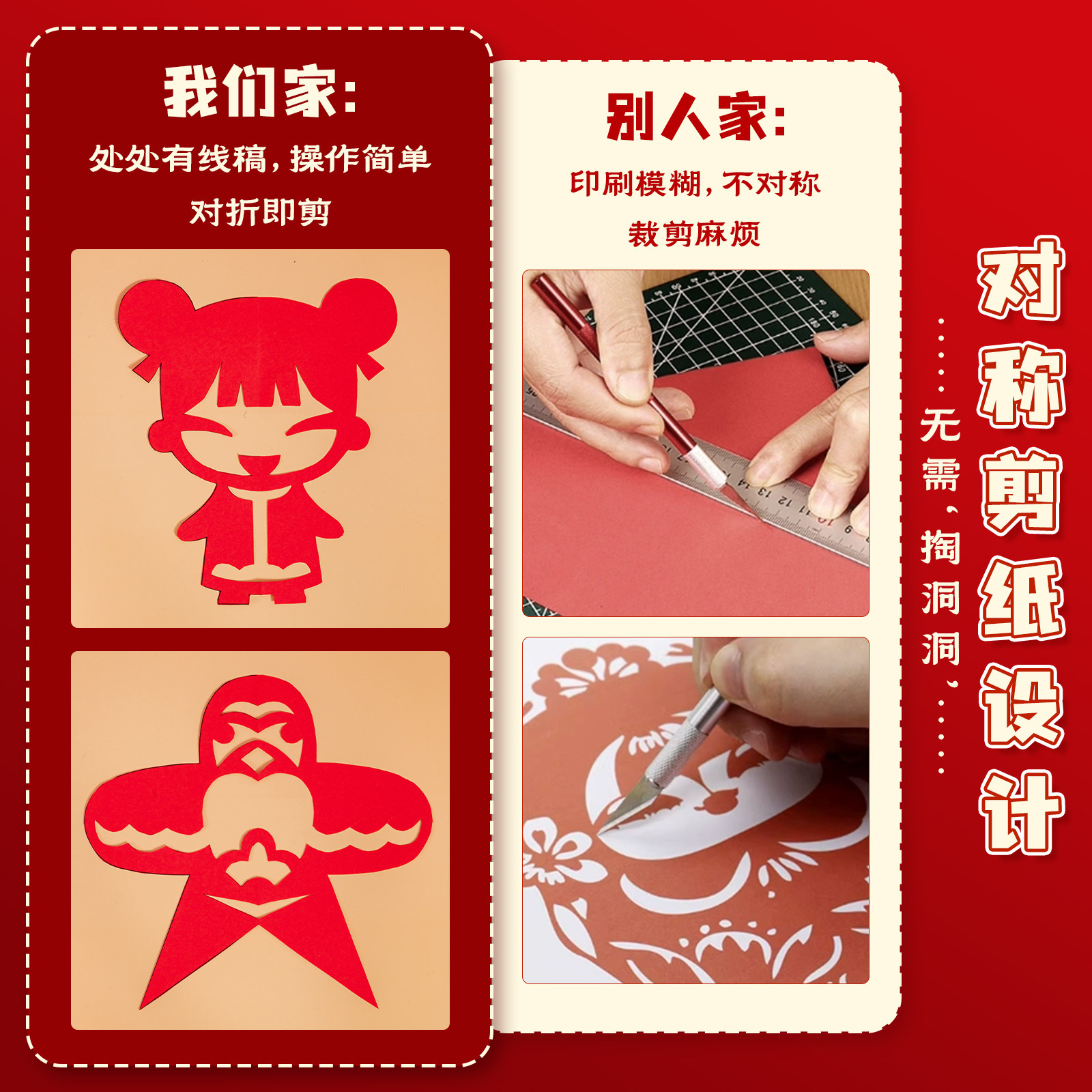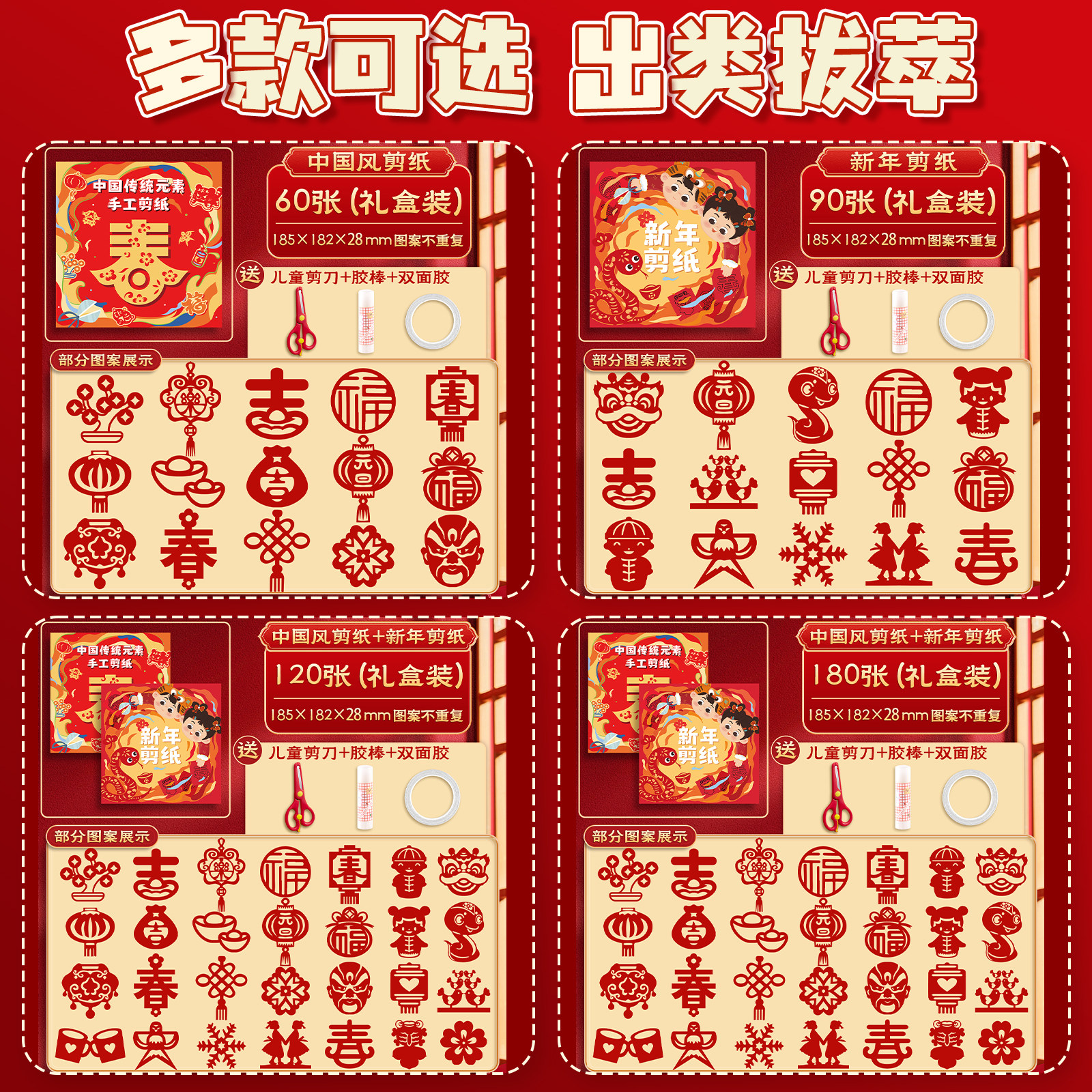 剪纸儿童手工中国风2026马年图案线稿幼儿园材料包diy工具春节福字专用新窗花纸