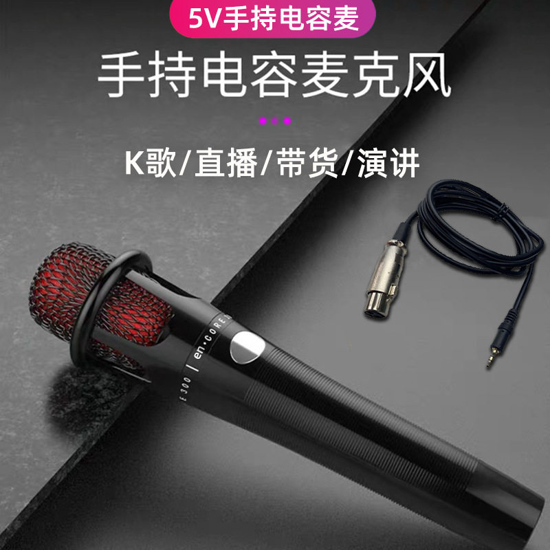 麦克风E300直播K歌通用有线话筒电容麦5V手机电脑家用手持麦