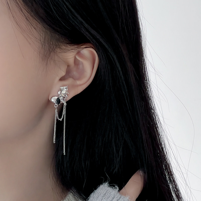 KANSAI液态爱心锆石流苏耳钉女小众个性耳环日韩冷淡风酷潮耳饰品