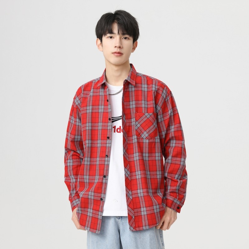 查尔斯桃心美式长袖衬衫男士春秋夏季薄款宽松休闲格子衬衣女外套
