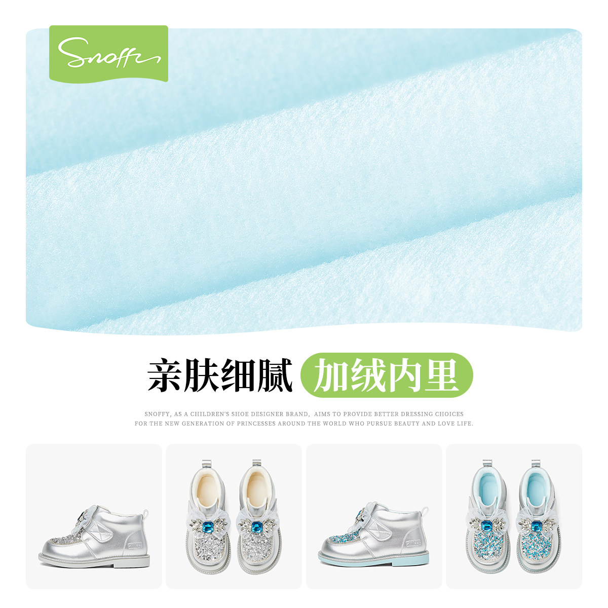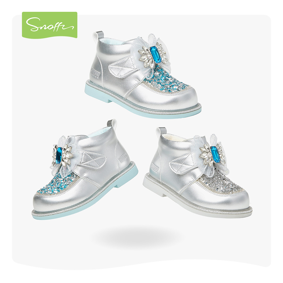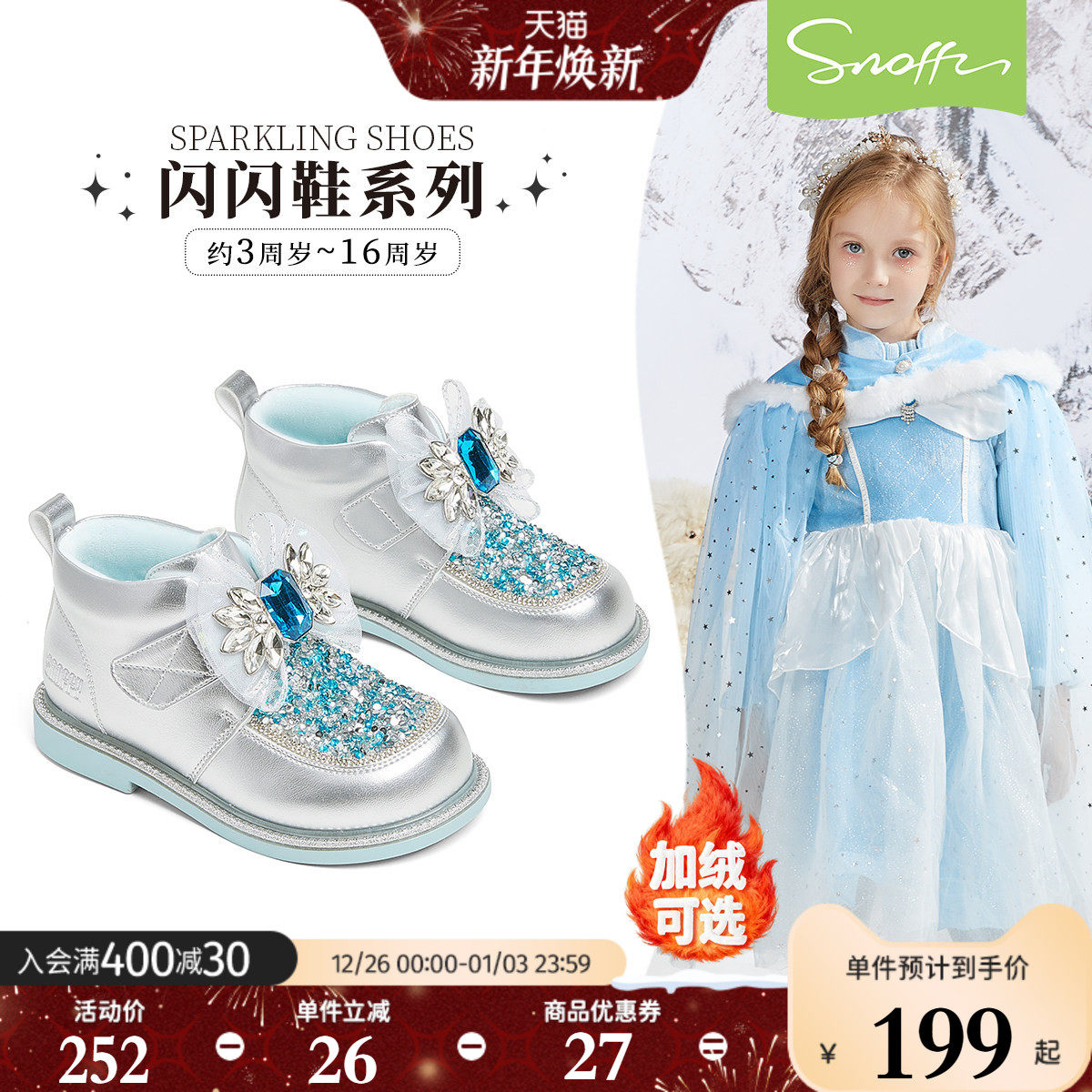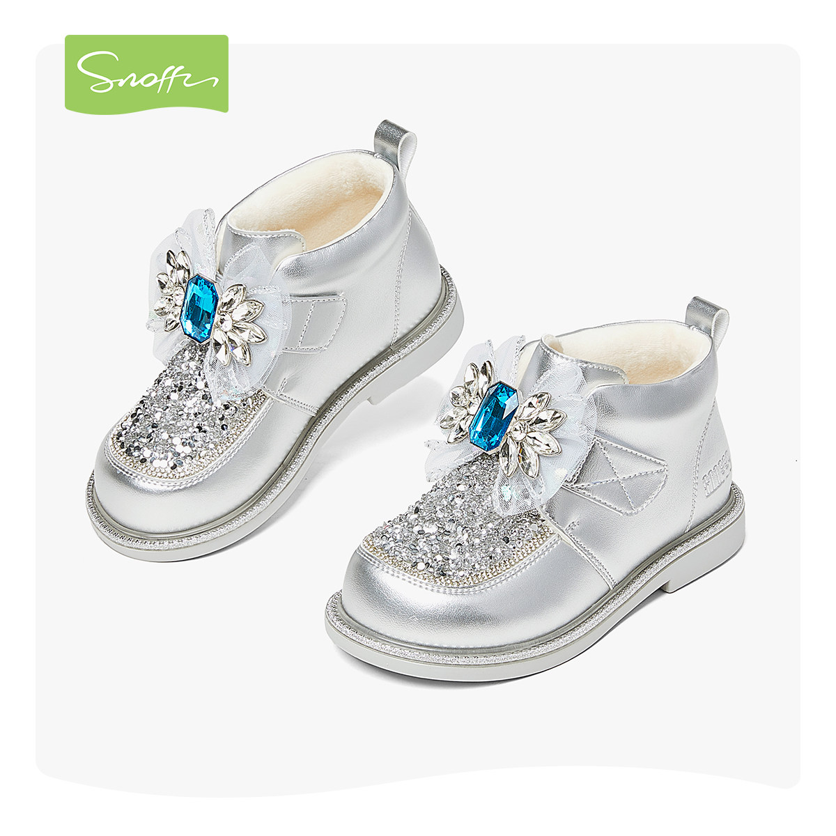 斯纳菲儿童棉鞋女童水晶鞋2025冬季新款小公主闪亮低筒靴加绒保暖