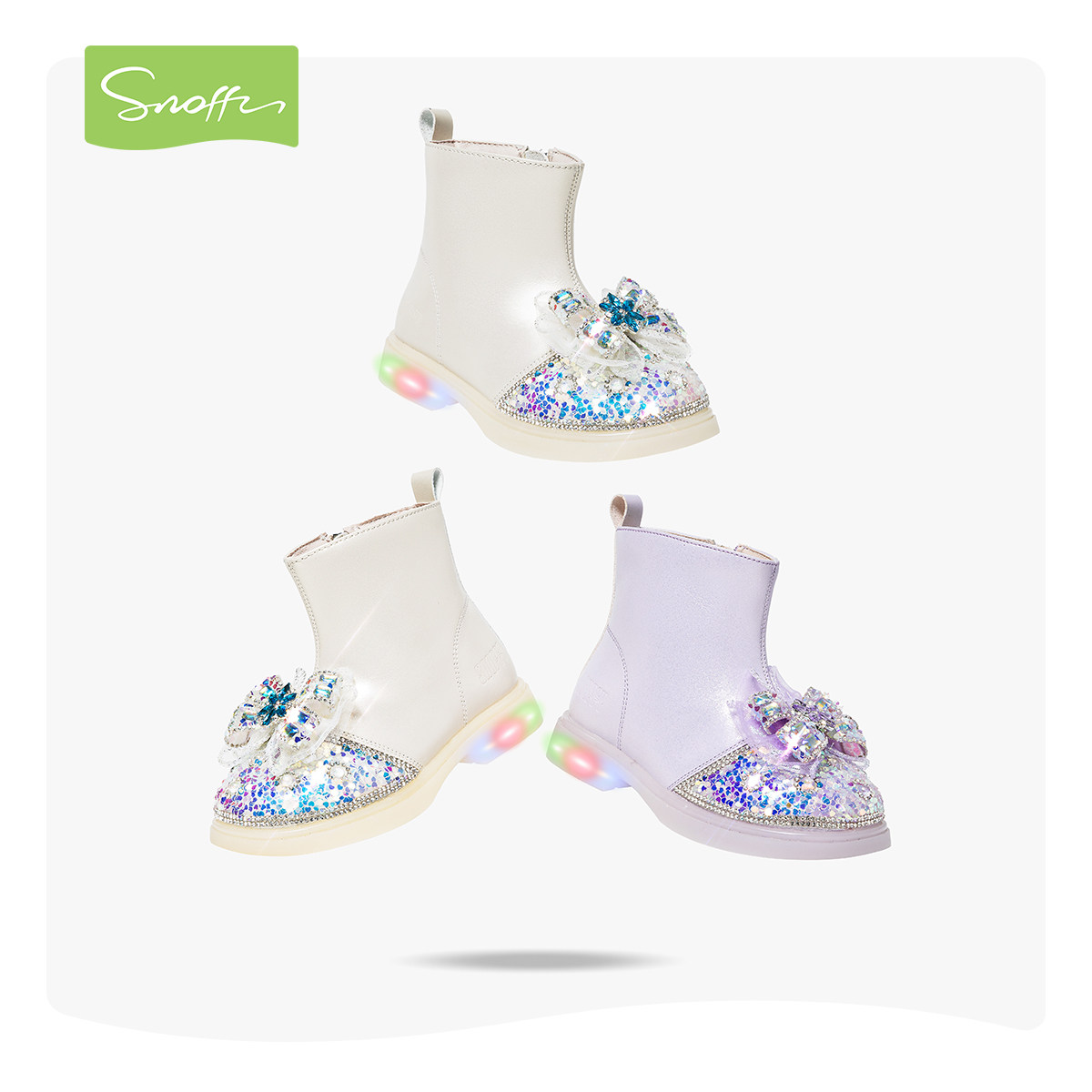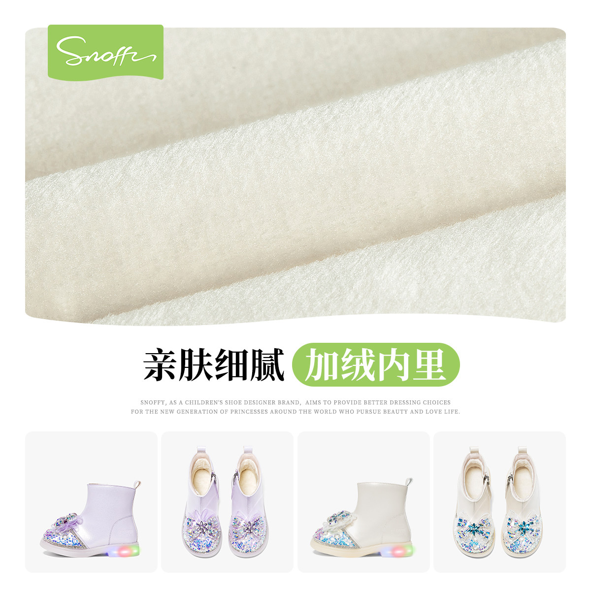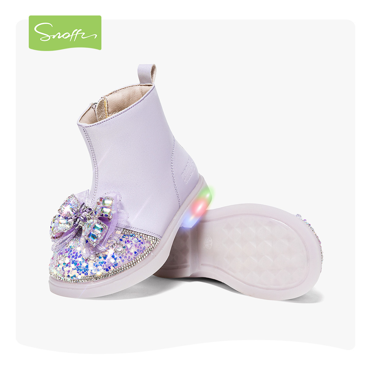 【闪灯鞋】斯纳菲女童靴子2025秋冬新款时尚短皮靴爱莎公主水晶靴